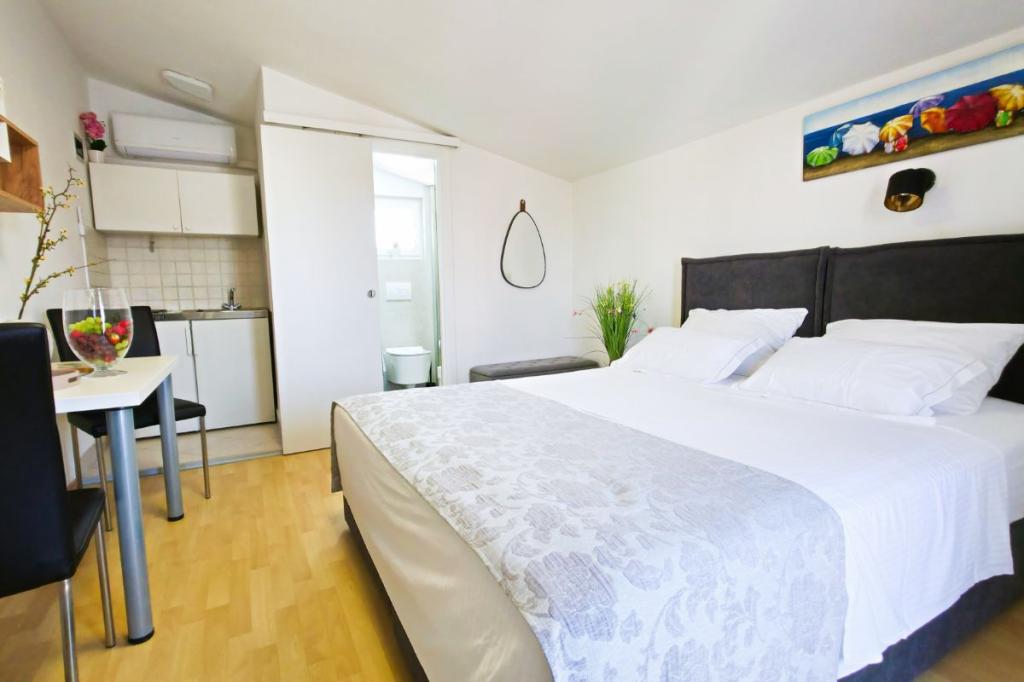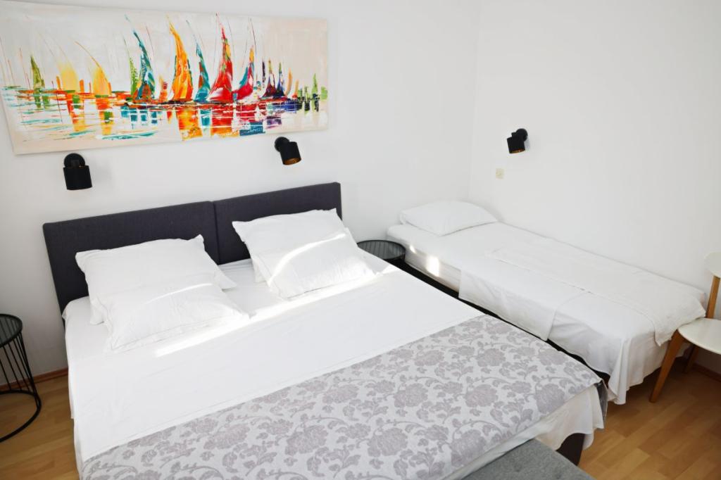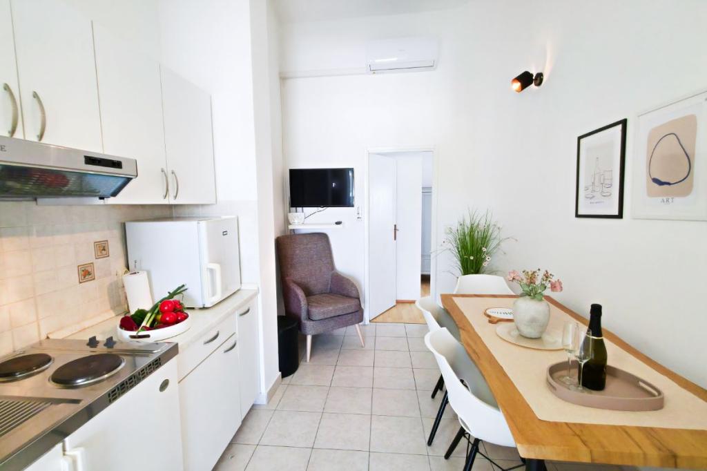 Apartamenty Tri Ferala położone są w samym centrum Pakoštane, zaledwie kilka kroków od głównego placu, sklepów, kawiarni, restauracji i targu rybnego. Apartamenty znajdują się nad słynną restauracją Tri Ferala, oferując spokój, prywatność i wygodę, a z tarasów roztacza się widok na malownicze uliczki Pakoštane. Plaża Janice, chętnie odwiedzana przez mieszkańców i turystów, oddalona jest o zaledwie 300 metrów. Jeśli szukasz zakwaterowania oferującego wygodę, dogodną lokalizację i autentyczne dalmatyńskie doznania, Apartamenty Tri Ferala są doskonałym wyborem. Zapytania prosimy przesyłać wyłącznie za pomocą formularza kontaktowego. Cennik jest aktualny i poprawny.