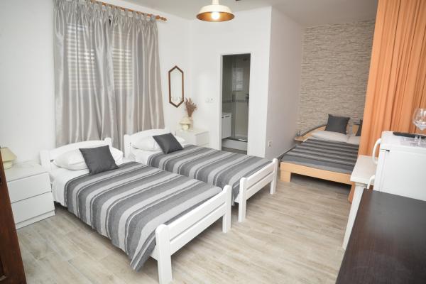 Apartamenty i domki mobilne są bardzo zadbane, czyste i wyposażone we wszystko, czego potrzeba na wakacjach. Lokalizacja obiektu jest znakomita, a odległość do plaży – bliższa niż się spodziewano. Plaża jest odpowiednia dla osób w każdym wieku, a szczególnie dla dzieci. Gospodarze są bardzo gościnni, towarzyscy i mili, zawsze do dyspozycji gości. Mieszkaliśmy we wszystkich apartamentach i domku mobilnym. Wracamy do Pakoštane na wakacje z rodziną Tuta od 19 lat – to mówi samo za siebie. Koniecznie zajrzyjcie kilka razy do baru plażowego Daniela, należącego do rodziny. Serwują tam bardzo dobre koktajle, a piwo jest schłodzone do odpowiedniej temperatury. Ceny – turystyczne, ale niezbyt wygórowane. A do gotowania, rozpieść się domową, organiczną oliwą z oliwek. Powiedz o tym Tanji, nie pożałujesz. Tanja i Toni, dziękujemy za tegoroczne wakacje i towarzystwo, do zobaczenia w przyszłym roku. Pozdrowienia z Novo mesto, Mediolanu i Bernardy. Pies Przyjeżdżamy, jak co roku, na minimum 14 dni w pierwszej połowie lipca, dlatego wśród wszystkich oferowanych apartamentów nie liczcie na to, że w tym okresie uda się Wam zarezerwować tylko jeden.