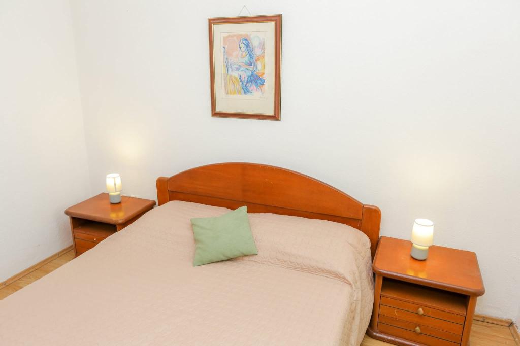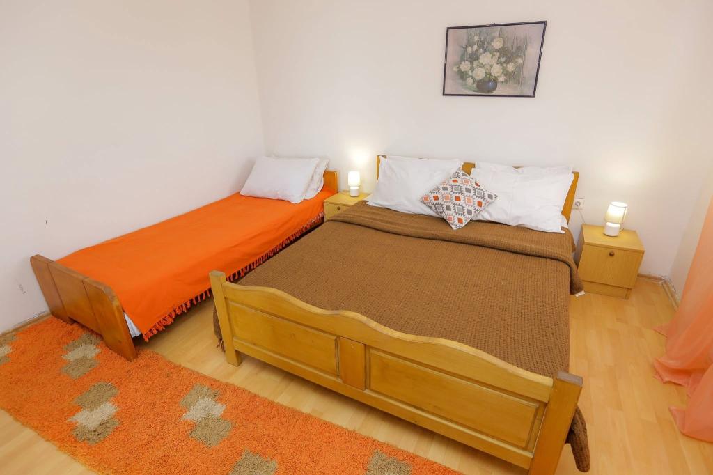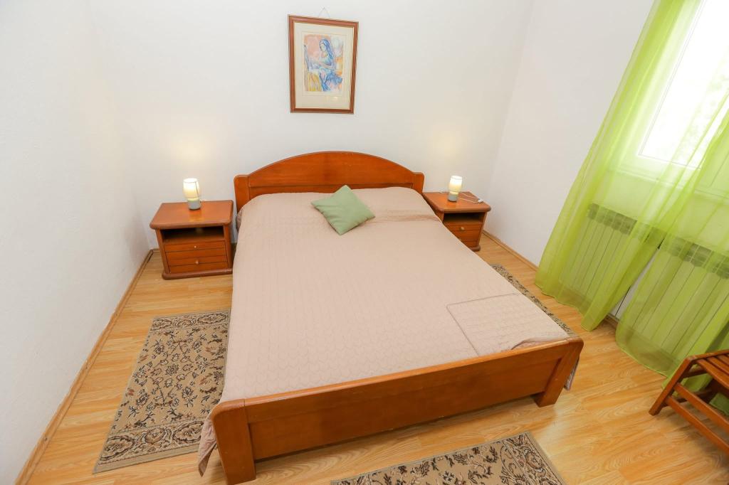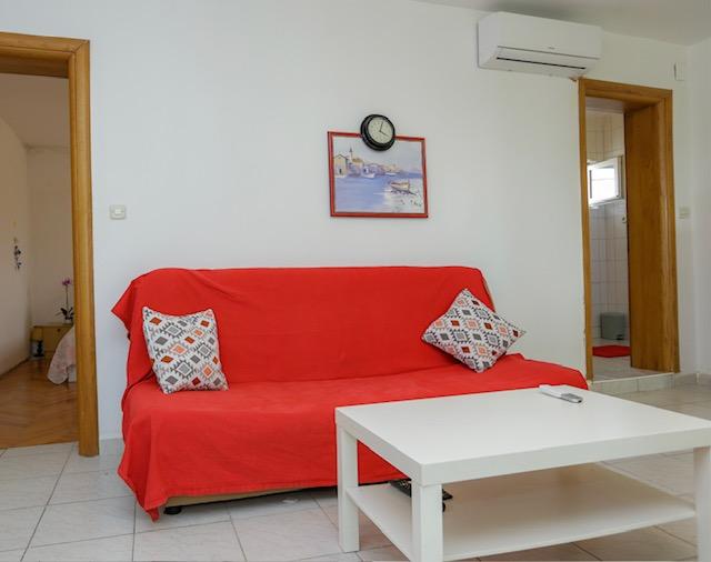Dom położony jest 300 m od centrum miasta i plaży miejskiej. Nowocześnie urządzone apartamenty na 1. i 2. piętrze posiadają duże tarasy z widokiem na wyspy Kornati. Spokojna okolica w pobliżu targu, lekarza i dworca autobusowego. Telewizory z dużym ekranem oferują ponad 100 programów w różnych językach. Za domem znajduje się ogród z grillem.