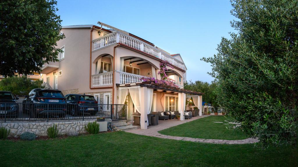Villa Krpeta położona jest w Pakoštane, w spokojnej okolicy, powyżej głównej plaży i blisko centrum, gdzie znajdują się wszystkie udogodnienia. Dojazd do domu jest zorganizowany, zapewniono miejsca parkingowe, apartamenty mają osobne wejścia, są niedawno odnowione, wszystkie wyposażone są w klimatyzację, każdy apartament posiada bezpłatny bezprzewodowy internet, telewizor LCD lub smart TV i kanały satelitarne, wszystkie balkony są skierowane na południe i oferują widok na morze i wyspy, grill i pralka są zawsze dostępne.