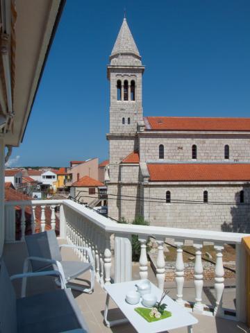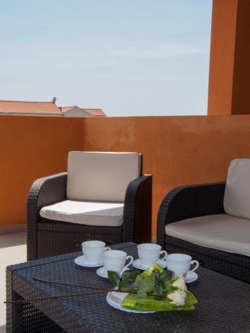 Urocze i wyposażone apartamenty z dużymi tarasami, położone w centrum Pakostane z prywatnym wejściem do głównej plaży i dodatkowymi treściami dla gości (grill, odkryty taras, parking).