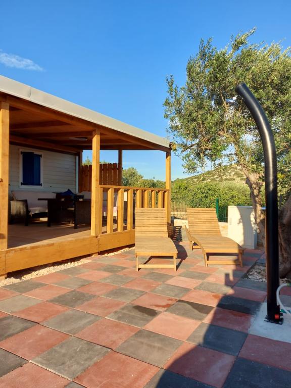 Pakoštane obóz Maslina znajduje się w Pakostane. Obóz znajduje się w cichym otoczeniu, w odległości zaledwie 10 metrów od morza. Obóz obejmuje 5 nowoczesnych domów mobilnych. Każdy mobile home posiada własny przestronny taras oraz własny grill. Parking znajduje się również w obozie. Obóz ma nowoczesne meble na przyjemny, rodzinny wypoczynek w naturze w starym gaju oliwnym. Zapraszamy do Pakostane - Camp Olive!