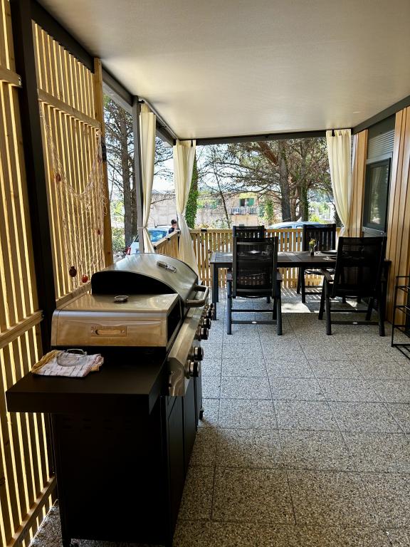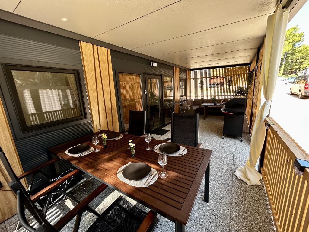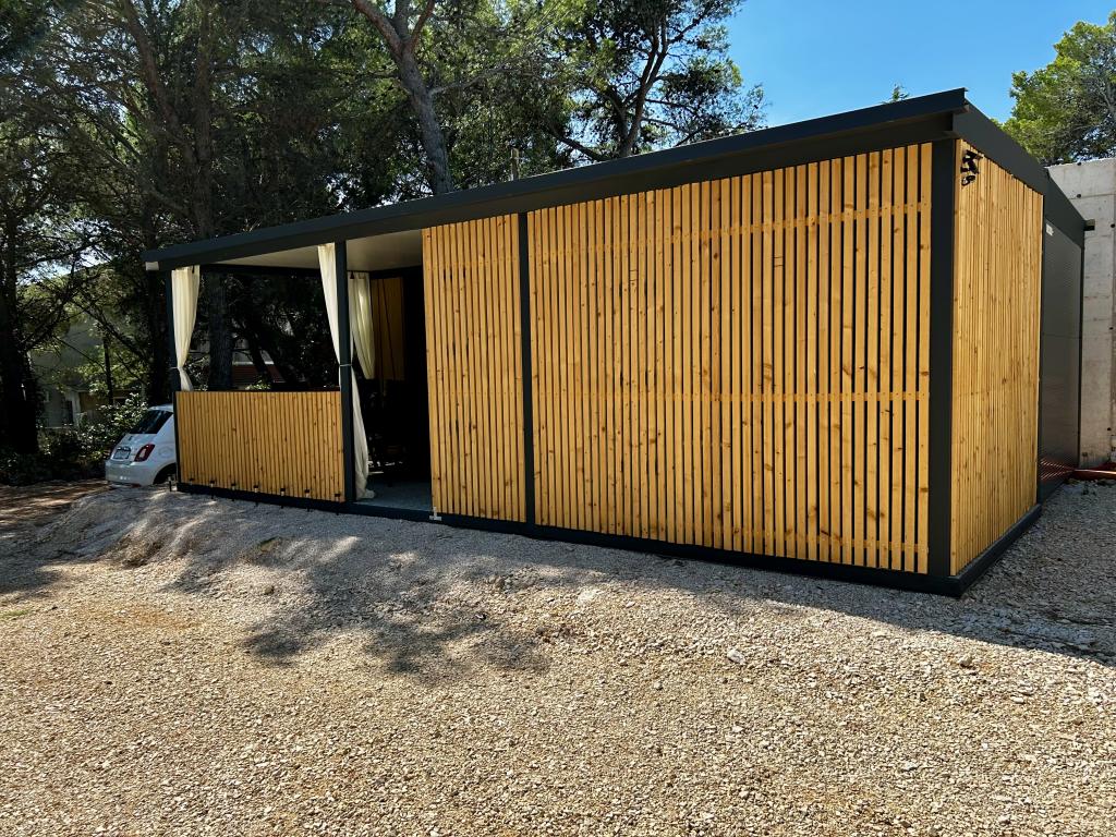 Witamy w naszym uroczym domku, idealnym miejscu na ucieczkę od codziennego stresu! Położony na cichym kempingu, zaledwie 4 minuty spacerem od pięknego morza oraz żwirowych i piaszczystych plaż, ten domek oferuje wszystko, czego potrzebujesz na relaksujący urlop. Najważniejsze cechy: 25 m2 + 25 m2 częściowo zadaszonego tarasu. • Dwie sypialnie: Domek ma dwie wygodne sypialnie z podwójnymi łóżkami, idealne dla par lub rodzin. Każdy pokój zapewnia spokojną przestrzeń do odpoczynku i relaksu. • Salon: Salon wyposażony jest w rozkładaną sofę, która zapewnia dodatkowe miejsce do spania, idealne dla przyjaciół lub dzieci. • Piękna przestrzeń na zewnątrz: Ciesz się poranną kawą lub wieczornymi spotkaniami na tarasie z pięknym widokiem na przyrodę. Ta przestrzeń jest idealna na grilla lub relaks z dobrą książką. • Bliskość plaży i jeziora: Zaledwie 4 minuty spacerem dzielą Cię od morza oraz żwirowych i piaszczystych plaż, a największe jezioro w Chorwacji znajduje się zaledwie 20 minut spacerem.