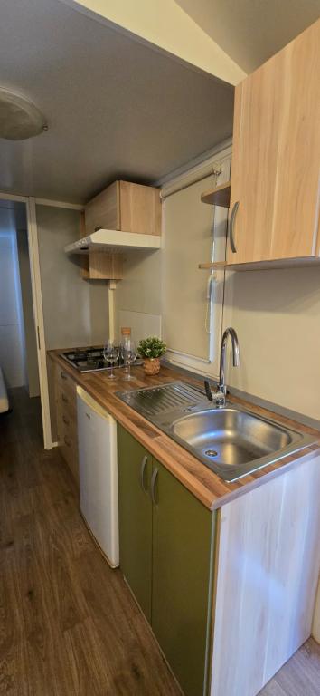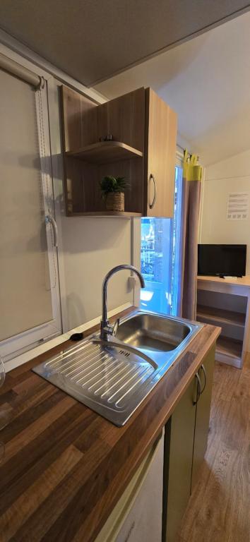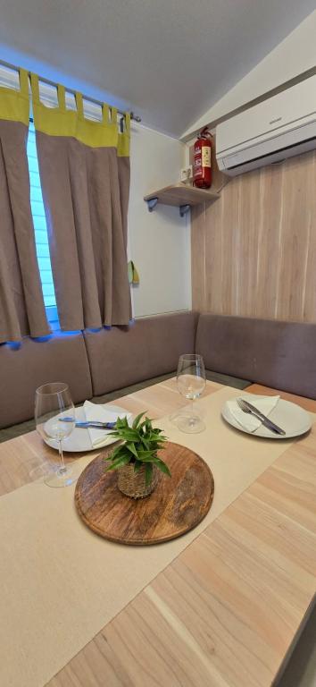 Opłata nie wliczone w cenę.Na terenie kempingu goście mają do dyspozycji supermarket, kawiarnię, restaurację, place zabaw dla dzieci, klub dla dzieci, centrum odnowy biologicznej oraz różnorodne obiekty sportowe. Recepcja kempingu jest czynna 24 godziny na dobę, 7 dni w tygodniu. W cenę każdego domku mobilnego wliczona jest wypożyczalnia sprzętu SUP, a w salonie na 7 dni w tygodniu można bezpłatnie korzystać z jednego kajaka w ramach jednego wynajmu.