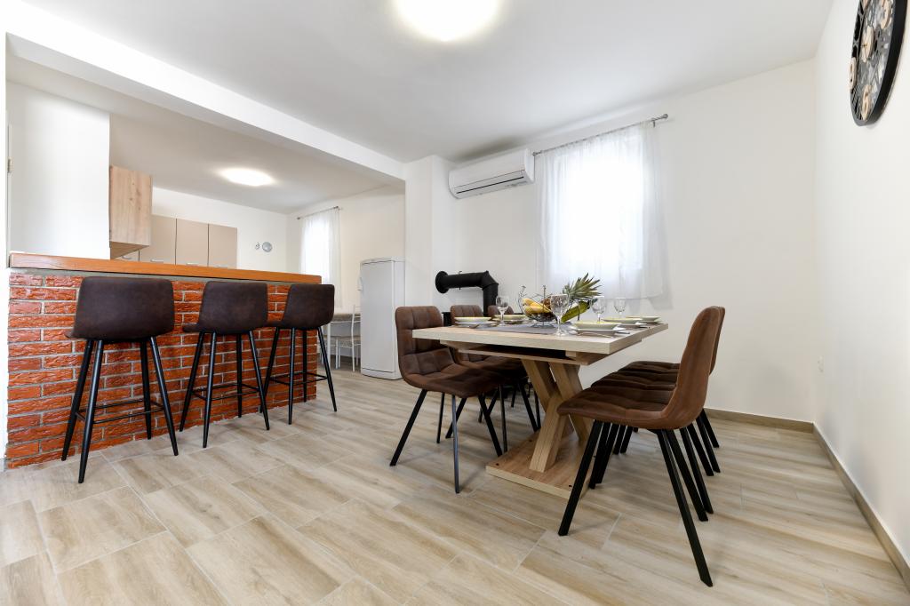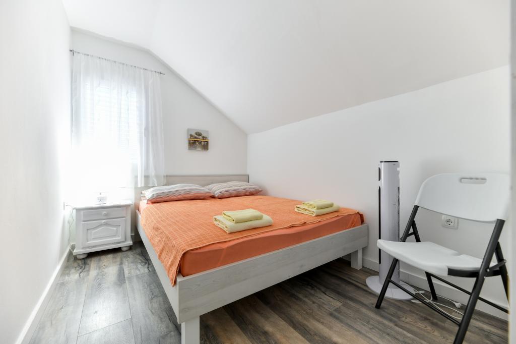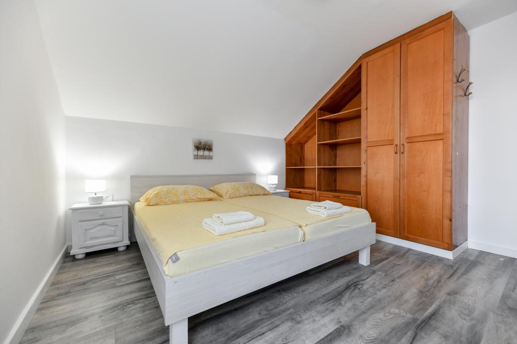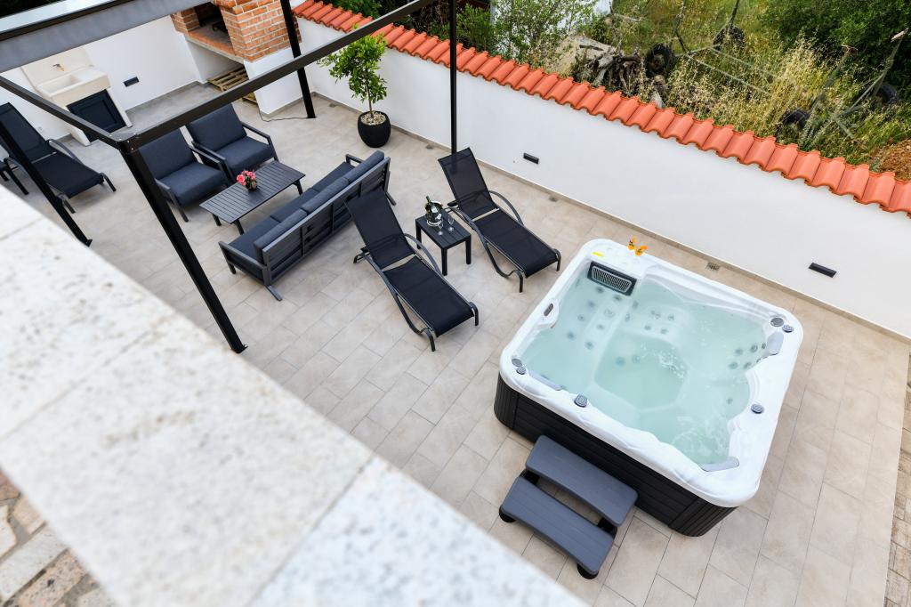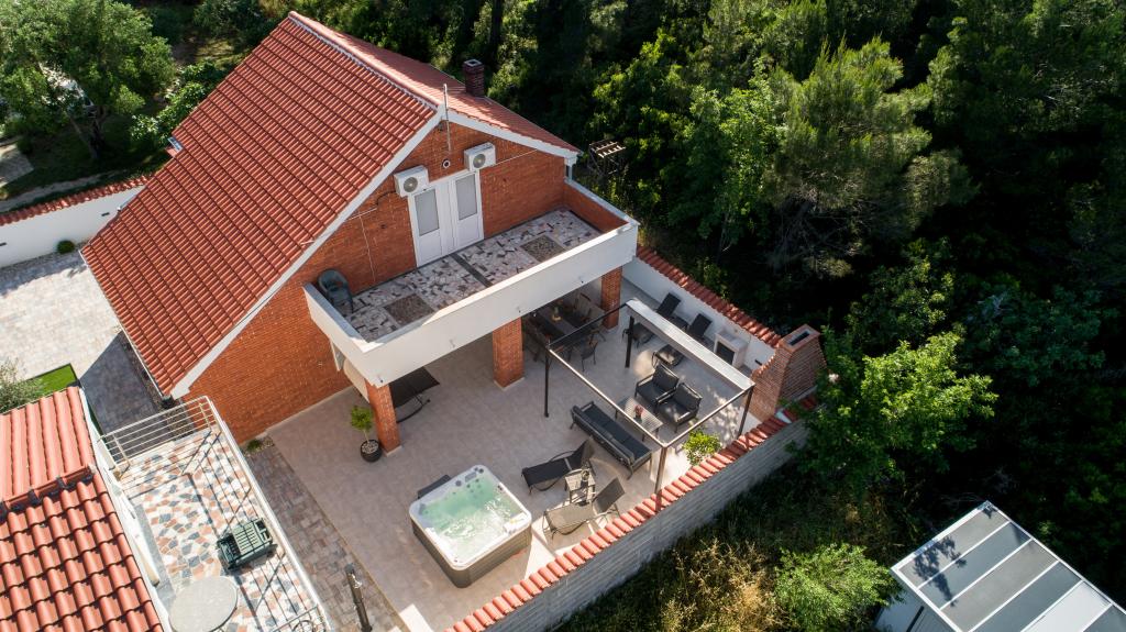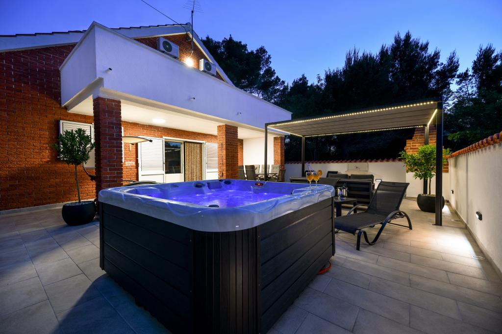 Dom położony jest na wyspie Pašman, w oazie spokoju, ciszy i piękna typowego małego dalmatyńskiego miasteczka. Trzy minuty spacerem do plaży, pięć minut do sklepu. W obiekcie znajduje się duży odkryty taras, grill, leżaki, huśtawka do wypoczynku oraz wanna z hydromasażem. Na parterze duży salon z kuchnią, dwie łazienki i trzy toalety oraz pralka. Na pierwszym piętrze są 4 sypialnie, dwa pokoje mają dostęp do dużego tarasu z widokiem na morze, podwójne łóżko o wymiarach 180x200, a pozostałe dwa pokoje mają podwójne łóżko 160x200 i widok na las. Na pierwszym piętrze znajduje się również jedna toaleta. Łóżeczko dziecięce jest dostępne na życzenie. Na podwórku znajdują się trzy miejsca parkingowe, a także możliwość skorzystania z prysznica na zewnątrz. Dom został całkowicie odnowiony w maju 2023 roku. Możliwy jest również pobyt 10 osób, przy czym za dodatkową opłatą zapewnione jest zakwaterowanie dla dwóch osób w kawalerce na tej samej działce. Kawalerka posiada kuchnię ze wszystkimi urządzeniami, łazienkę z prysznicem, TV, klimatyzację oraz taras z widokiem na morze.