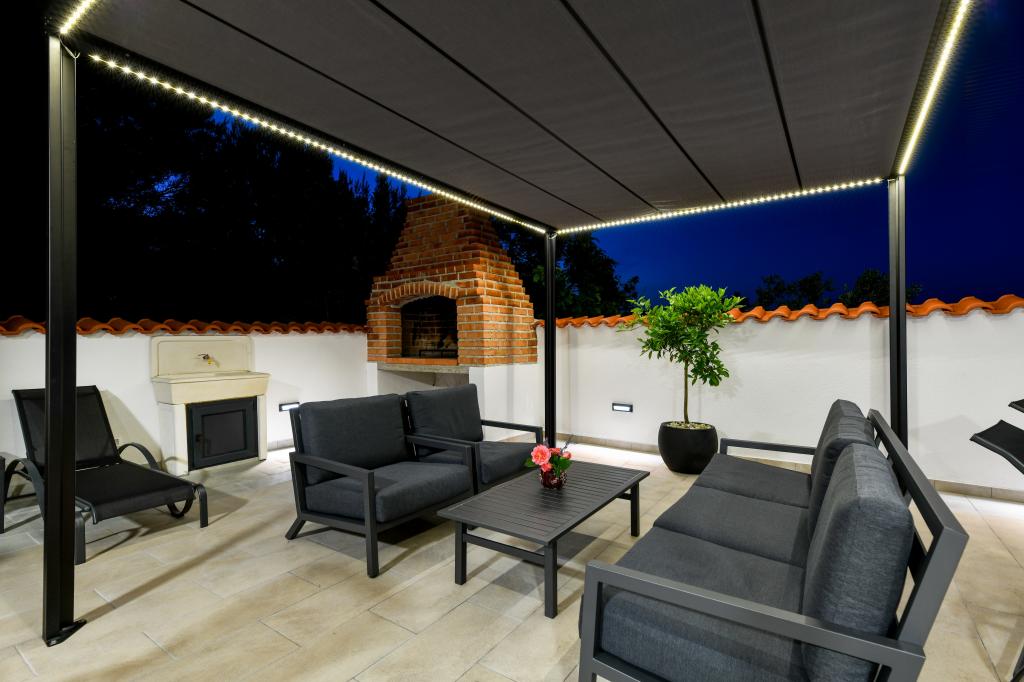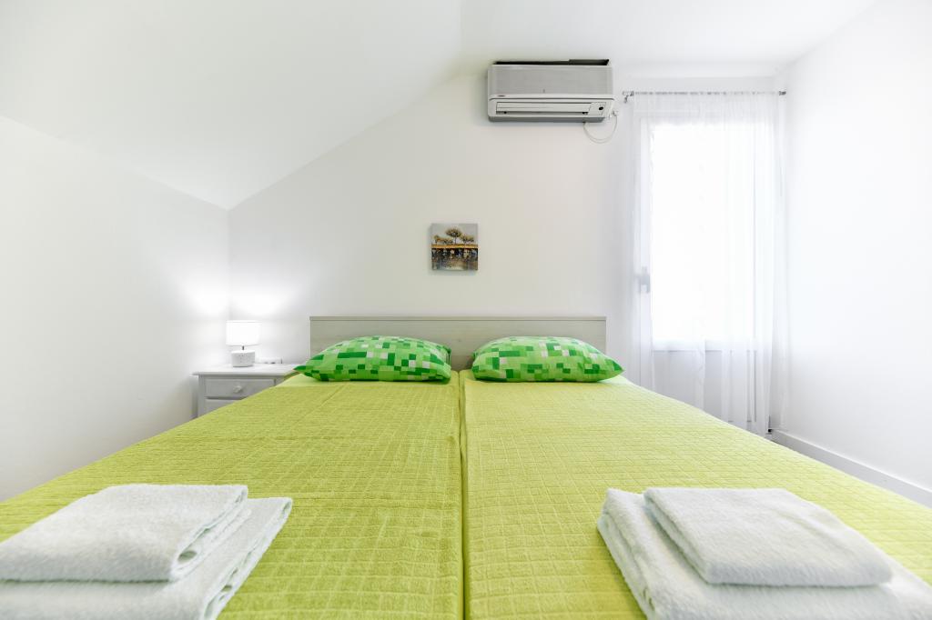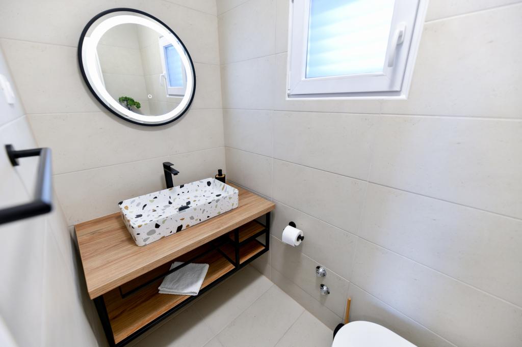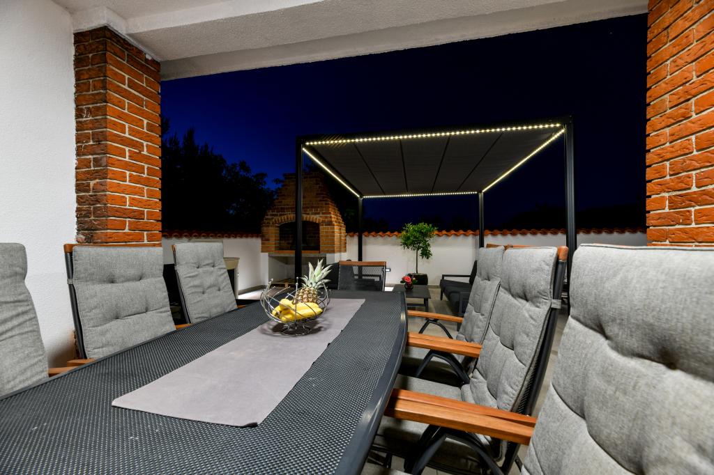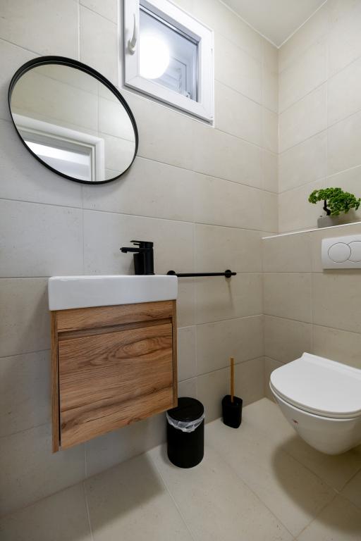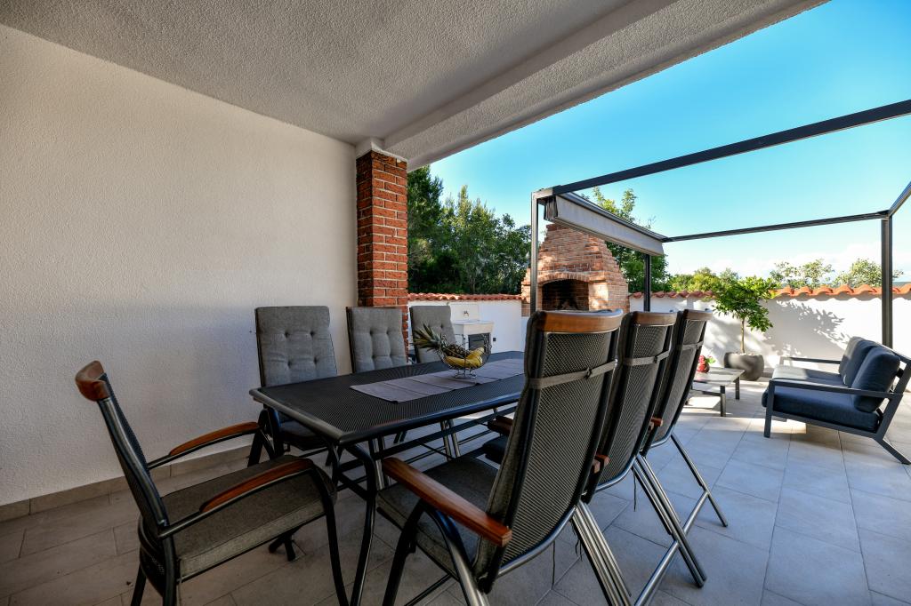 Dom położony jest na wyspie Pašman, w oazie spokoju, ciszy i piękna typowego małego dalmatyńskiego miasteczka. Trzy minuty spacerem do plaży, pięć minut do sklepu. W obiekcie znajduje się duży odkryty taras, grill, leżaki, huśtawka do wypoczynku oraz wanna z hydromasażem. Na parterze duży salon z kuchnią, dwie łazienki i trzy toalety oraz pralka. Na pierwszym piętrze są 4 sypialnie, dwa pokoje mają dostęp do dużego tarasu z widokiem na morze, podwójne łóżko o wymiarach 180x200, a pozostałe dwa pokoje mają podwójne łóżko 160x200 i widok na las. Na pierwszym piętrze znajduje się również jedna toaleta. Łóżeczko dziecięce jest dostępne na życzenie. Na podwórku znajdują się trzy miejsca parkingowe, a także możliwość skorzystania z prysznica na zewnątrz. Dom został całkowicie odnowiony w maju 2023 roku. Możliwy jest również pobyt 10 osób, przy czym za dodatkową opłatą zapewnione jest zakwaterowanie dla dwóch osób w kawalerce na tej samej działce. Kawalerka posiada kuchnię ze wszystkimi urządzeniami, łazienkę z prysznicem, TV, klimatyzację oraz taras z widokiem na morze.