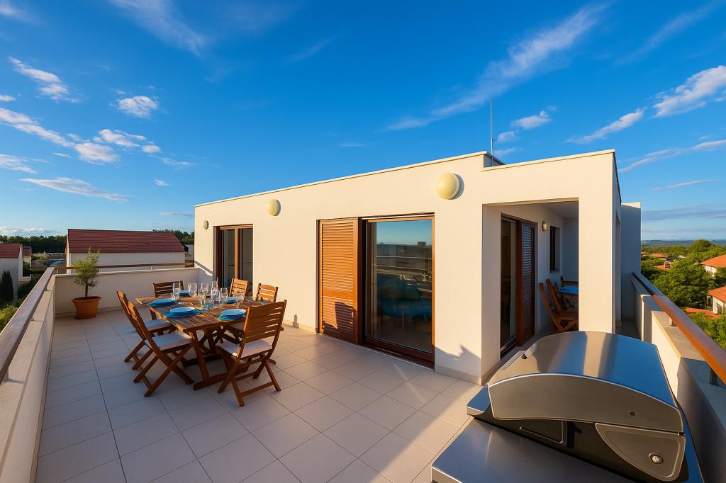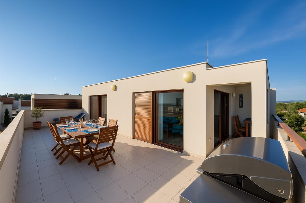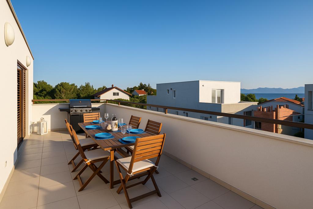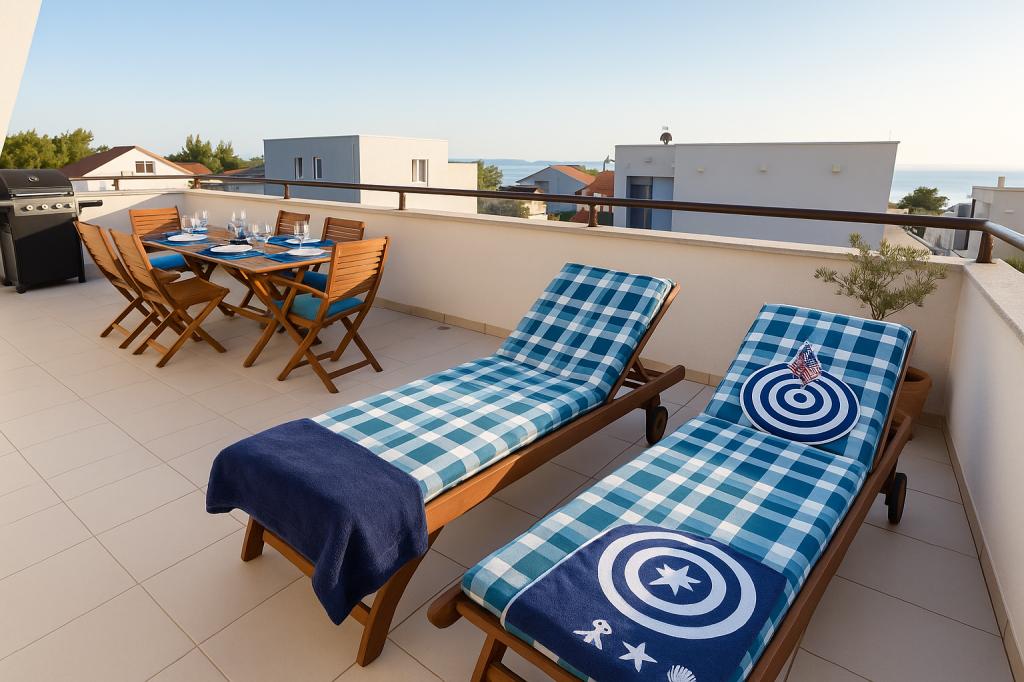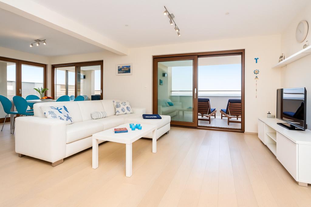 Obiekt Aquamarine Deluxe Penthouse Apartment położony jest w miejscowości Petrčani, 250 metrów od plaży Punta Radman, 350 metrów od plaży Pinija i 200 metrów od przystanku autobusowego Petrčane. Oferuje on sprzęt do grillowania oraz taras. Ten klimatyzowany obiekt położony jest 150 metrów od plaży Pineta i oferuje bezpłatne WiFi oraz prywatny parking. Mieszkanie ma 3 sypialnie, 1 łazienkę, pościel, ręczniki, telewizor z płaskim ekranem i kanałami telewizji satelitarnej, jadalnię, w pełni wyposażoną kuchnię i balkon z widokiem na morze. Najbliższe lotnisko, Zadar, oddalone jest od obiektu o 23 km. Za dodatkową opłatą apartament organizuje transport z i na lotnisko.