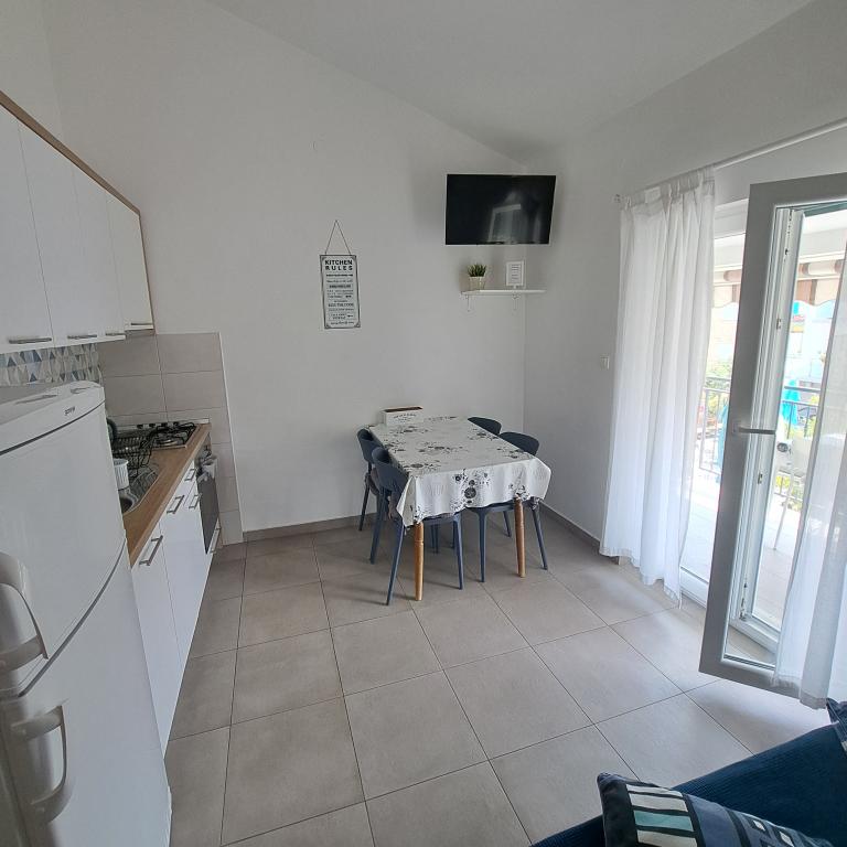 Gospodarz jest bardzo miły, zakwaterowanie jest ładne i czyste, parking przy domu na podwórku, odległość do plaży to 2-3 minuty. Bardzo dobre miejsce na relaks. Plaża jest kamienista, która stopniowo przechodzi w piasek na dnie morza. Woda w morzu jest czysta i przejrzysta. Na plaży znajdują się prysznice, leżaki, parasole, restauracje i bary. Miejsce absolutnie rewelacyjne.