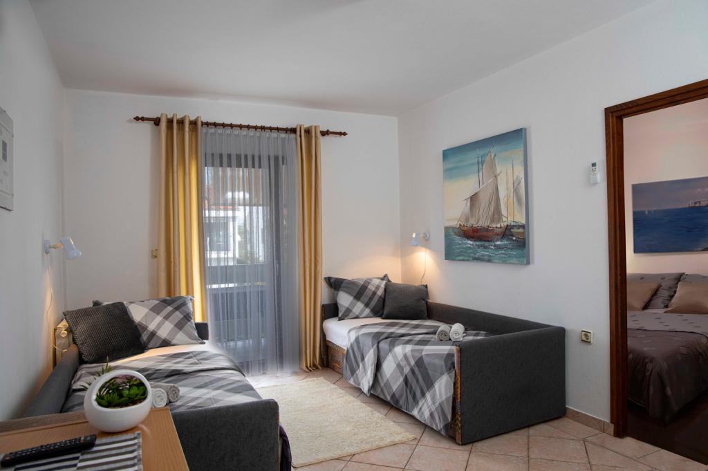 Apartamenty są zadbane i czyste i wyposażone we wszystko co potrzebne na krótki lub długi pobyt. Właściciel jest przyjazny, przystępny i chętny do pomocy we wszystkim. Plaże są dosłownie na wyciągnięcie ręki, minuta spaceru (z małym dzieckiem) w którąkolwiek stronę. Prawie zawsze można znaleźć chłodziarkę, a dla dzieci jest też piękna piaszczysta plaża z płytkim morzem, gdzie są miejsca o każdej porze dnia. W miejscu jest wystarczająco dużo kawiarni, restauracji, pizzerii, sklepów z pamiątkami... Samochód jest dosłownie zbędny (i można go zostawić na zarezerwowanym parkingu w cieniu obok apartamentu), ponieważ wszystko jest w zasięgu kilkuminutowego spaceru. Wszelkie rekomendacje dotyczące mieszkania.