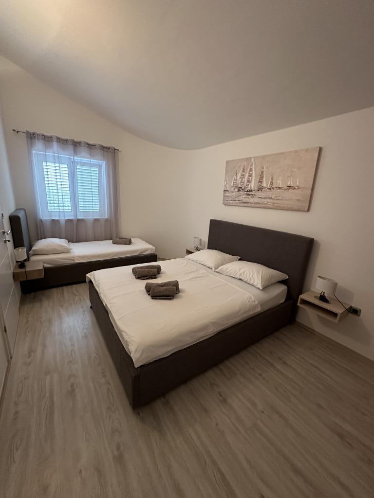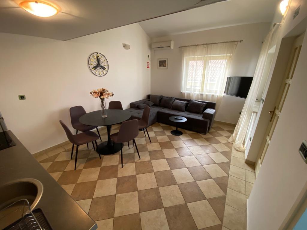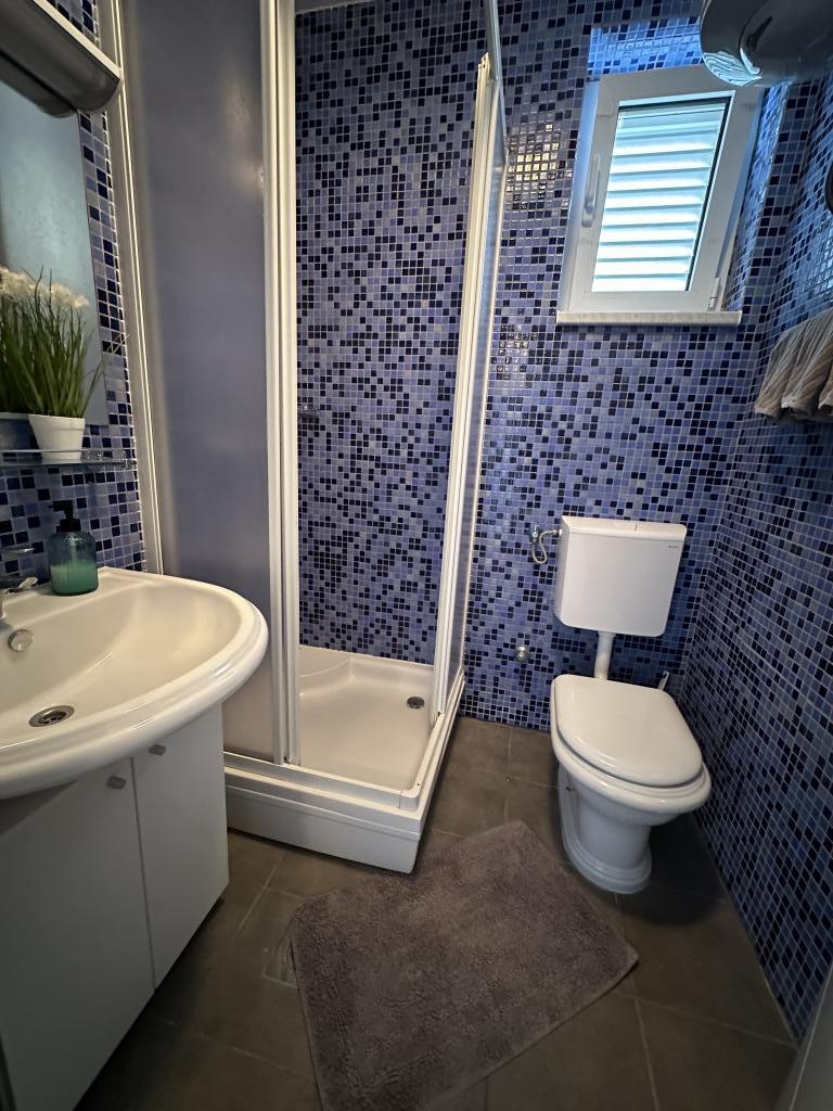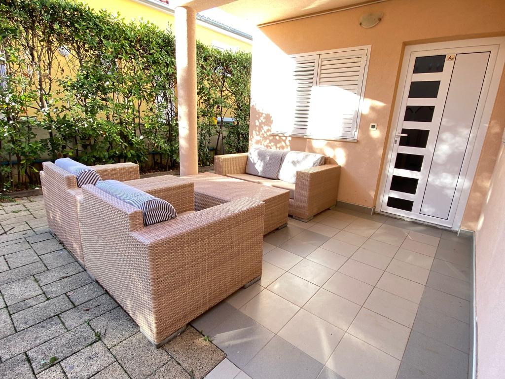 Apartamenty Anđela - Punta Skala (I ulica 1c-1d) A2, A3, A4, A5, A6 Apartamenty są oddzielone zaledwie 50 m od morza i plaży, z której prowadzi promenada do centrum Petrčani (1000 m). Plaża położona w zatoce to połączenie części utwardzonej, żwirowej i piaszczystej, dzięki czemu zadowoli gusta każdego, zwłaszcza dzieci. Apartamenty są klimatyzowane, posiadają balkon, taras i miejsce parkingowe, istnieje także możliwość skorzystania z grilla oraz prysznica zewnętrznego z ciepłą wodą. Każdy apartament posiada oddzielną sypialnię, kuchnię z jadalnią oraz łazienkę z prysznicem. W bezpośrednim sąsiedztwie znajduje się sklep spożywczy, a także piekarnia, cukiernia i restauracja.