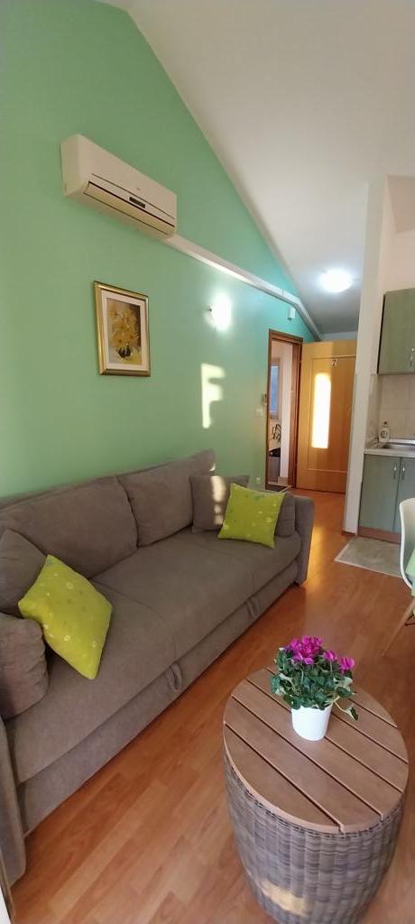 Apartamenty znajdują się w nowym rodzinnym domu w centrum Petrcan. Pod domem znajduje się pięknie zagospodarowany plac zabaw dla dzieci, promenada i port z łódkami. W pobliżu znajdują się plaże, restauracje, sklepy. Apartamenty posiadają zadaszone balkony z widokiem na morze i wyspy. Są wygodne, z dwiema sypialniami, salonem z kuchnią, łazienką. Apartamenty są klimatyzowane, z internetem wi fi, mikrofalówką, czajnikiem, ekspresem do kawy oraz sztućcami i napojami. Wyposażone są w pościel i ręczniki.