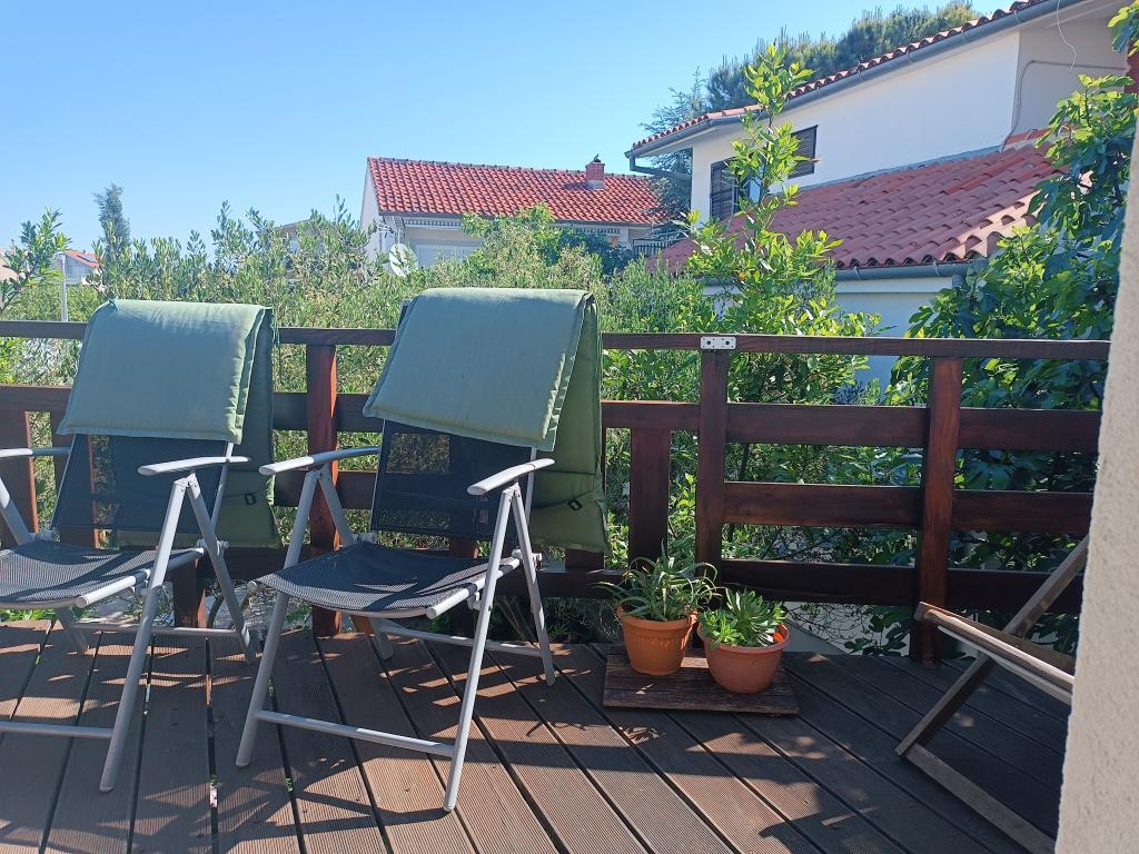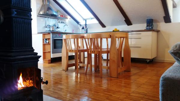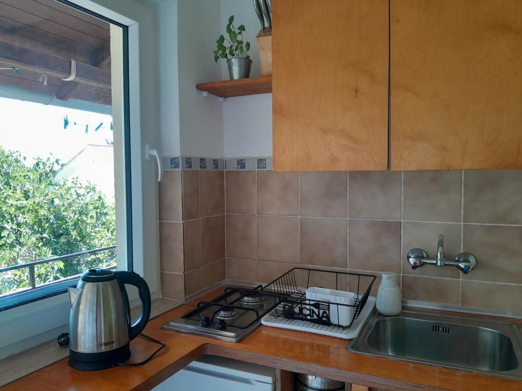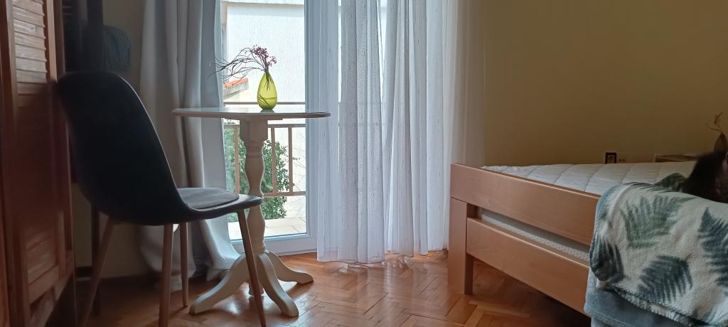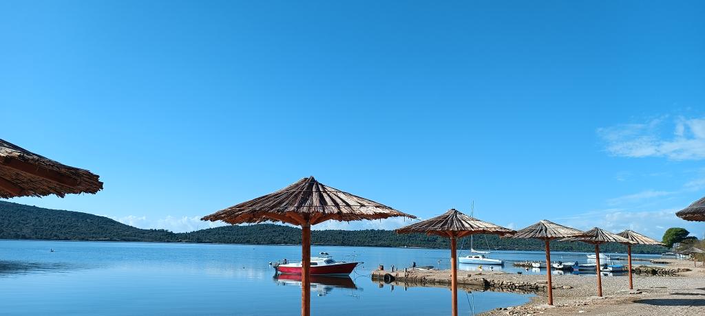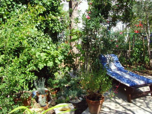 Apartament Log Inn znajduje się na pierwszym piętrze domu z dwoma apartamentami, w cichej, rodzinnej uliczce. Ogród domu jest zacieniony drzewami oliwnymi, figowymi i sosnami, z miejscem parkingowym na podwórku. Centrum miasta ze sklepami, piekarniami, cukierniami, kawiarniami i restauracjami znajduje się 10 minut spacerem, a pierwsza kamienista plaża oddalona jest o zaledwie 5-10 minut spacerem. W Log Inn przyjemnie jest przebywać bez względu na pogodę – przestronny apartament posiada oddzielny pokój z salonem z zabawkami i książkami z obrazkami. Jest dobrze wyposażony (naczynia, czajnik, ekspres do kawy, Max-TV, Wi-Fi, klimatyzacja), a w salonie wiosenne wieczory można zrelaksować się przy kominku w grubym piecu. Taras z meblami ogrodowymi jest przyjemny, a goście chętnie jedzą na nim śniadania, opalają się lub spędzają wieczór. Studio jest mniejsze i ma mniejszy aneks kuchenny, ale dzięki ogrodowi jest przyjemne nawet w letnie upały. Oba apartamenty są klimatyzowane i ogrzewane. Poza sezonem wynajmujemy je ze zniżkami i na raty miesięczne