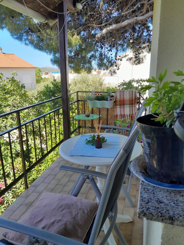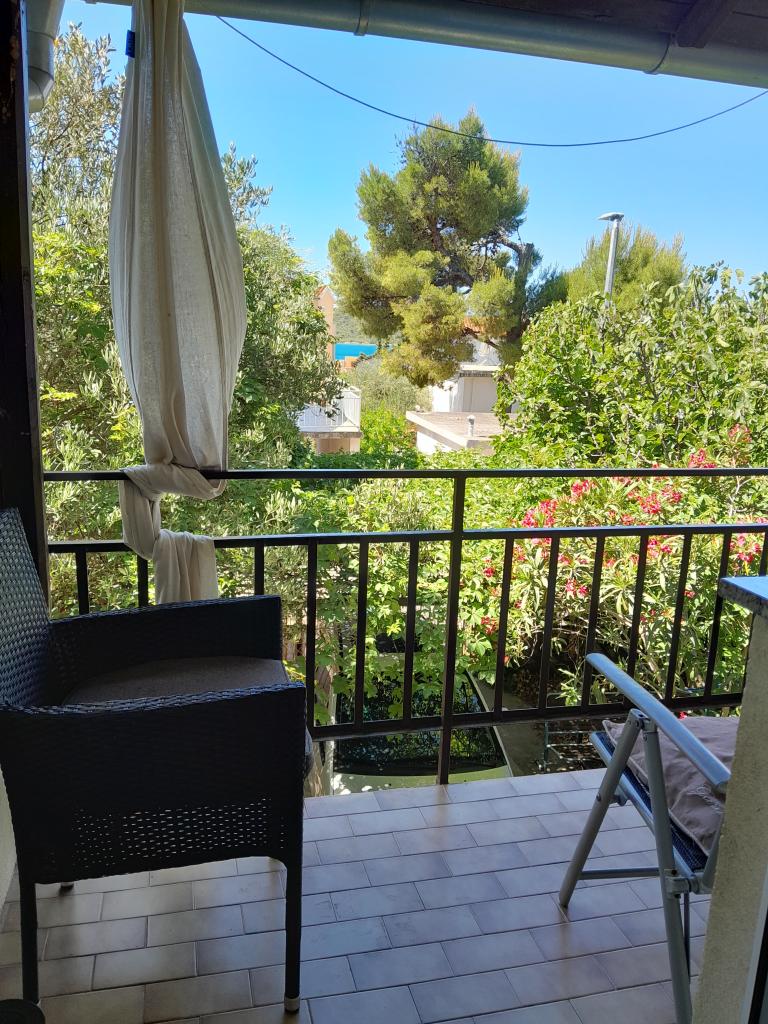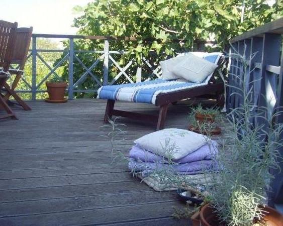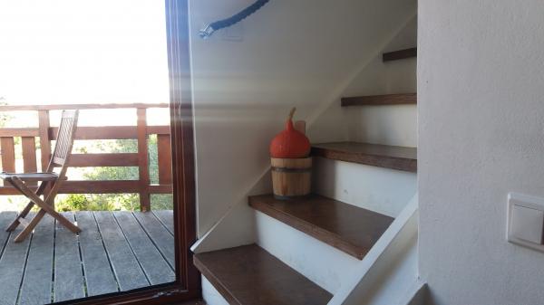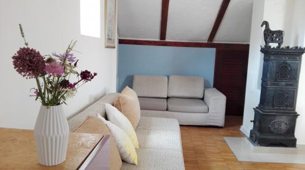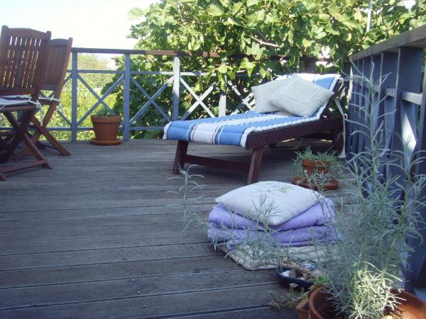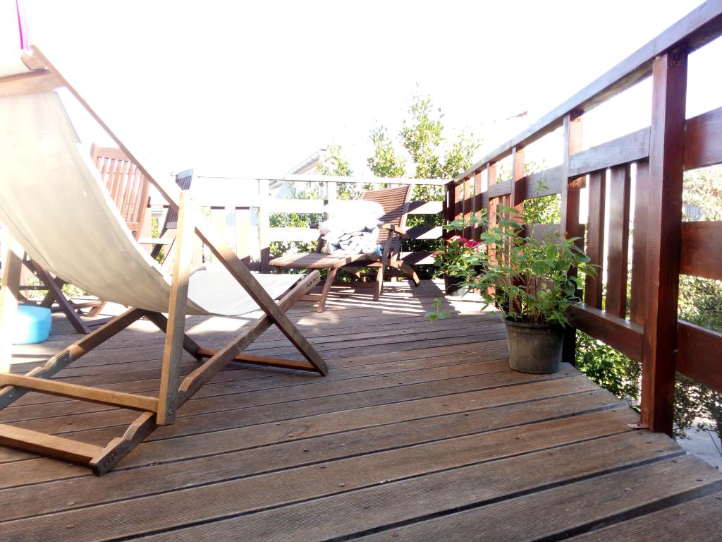 Apartament Log Inn znajduje się na pierwszym piętrze domu z dwoma apartamentami, w cichej, rodzinnej uliczce. Ogród domu jest zacieniony drzewami oliwnymi, figowymi i sosnami, z miejscem parkingowym na podwórku. Centrum miasta ze sklepami, piekarniami, cukierniami, kawiarniami i restauracjami znajduje się 10 minut spacerem, a pierwsza kamienista plaża oddalona jest o zaledwie 5-10 minut spacerem. W Log Inn przyjemnie jest przebywać bez względu na pogodę – przestronny apartament posiada oddzielny pokój z salonem z zabawkami i książkami z obrazkami. Jest dobrze wyposażony (naczynia, czajnik, ekspres do kawy, Max-TV, Wi-Fi, klimatyzacja), a w salonie wiosenne wieczory można zrelaksować się przy kominku w grubym piecu. Taras z meblami ogrodowymi jest przyjemny, a goście chętnie jedzą na nim śniadania, opalają się lub spędzają wieczór. Studio jest mniejsze i ma mniejszy aneks kuchenny, ale dzięki ogrodowi jest przyjemne nawet w letnie upały. Oba apartamenty są klimatyzowane i ogrzewane. Poza sezonem wynajmujemy je ze zniżkami i na raty miesięczne