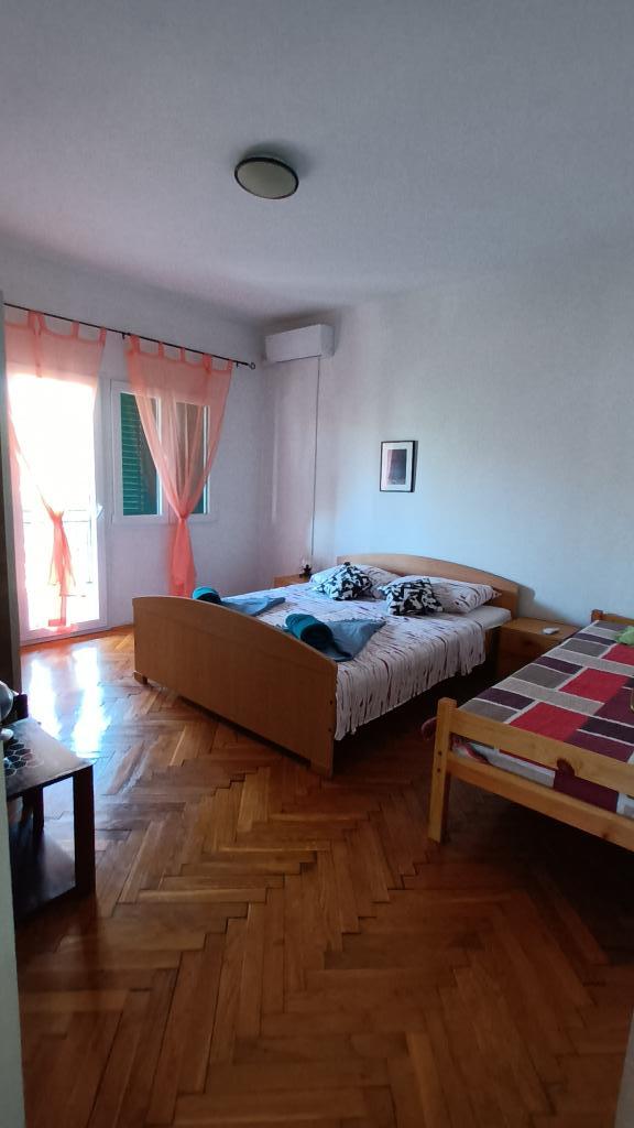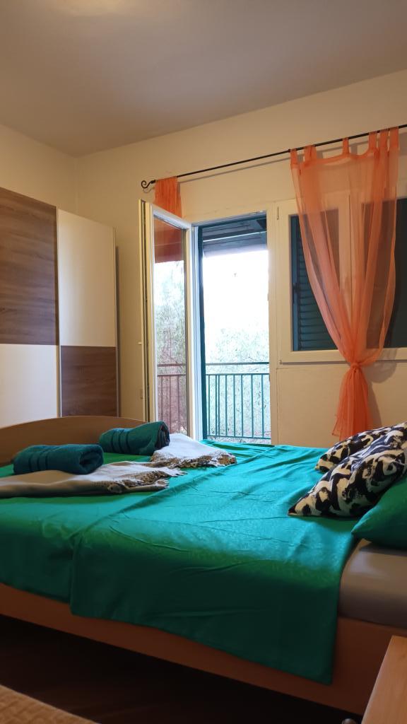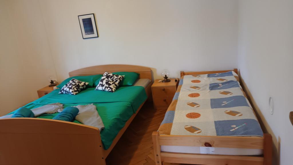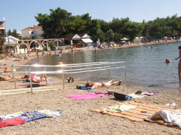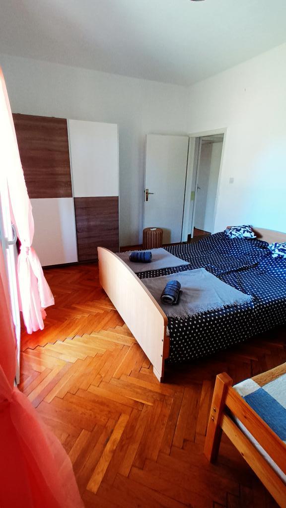 Przestronny apartament, na 1 piętrze, dwie sypialnie, każda z trzema łóżkami (łóżko małżeńskie i łóżko pojedyncze), kuchnia, pokój dzienny, toaleta, łazienka, balkon. Klimatyzacja w obu sypialniach, telewizja satelitarna, parking, grill, wifi, blisko plaży. Znajduje się w spokojnej części Pirovac, 5-10 minut spacerem do centrum i mniej niż 5 minut do plaży Lolić.
