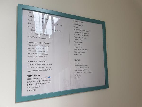 Czytaj więcej Kwater*Cena apartamentu obejmuje: podatek turystyczny, korzystanie z klimatyzacji, Wi-Fi, pościel, ręczniki kąpielowe i kuchenne. Ręczniki plażowe nie są dostępne. *Jedno miejsce parkingowe na jednostkę zakwaterowania jest zapewnione i bezpłatne, dwa tylko po uzgodnieniu, jeśli jest miejsce. *Do apartamentu nie wolno wnosić rowerów i skuterów, zwłaszcza elektrycznych. Prosimy o zgłoszenie przyjazdu środkami transportu elektrycznego, które są przechowywane w samochodach. *Zaliczka wynosi 200 EUR/jednostka przy rezerwacji (brak zwrotu w przypadku anulowania rezerwacji przez gościa). Po wpłaceniu zaliczki wyślemy potwierdzenie ze wszystkimi informacjami dotyczącymi rezerwacji i regulaminem domu. *Jedno dziecko do 12 lat może być zakwaterowane w apartamencie A2, cena wynosi 10 EUR za noc. *W razie pytań prosimy o kontakt e-mailowy, postaramy się odpowiedzieć tak szybko, jak to możliwe, lub zadzwoń do nas ;) *Zameldowanie 13:00, wymeldowanie 10:00.