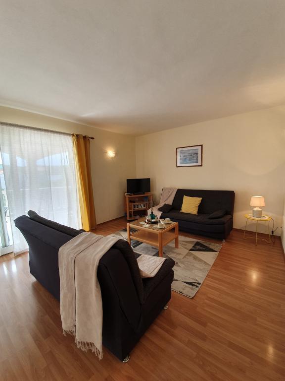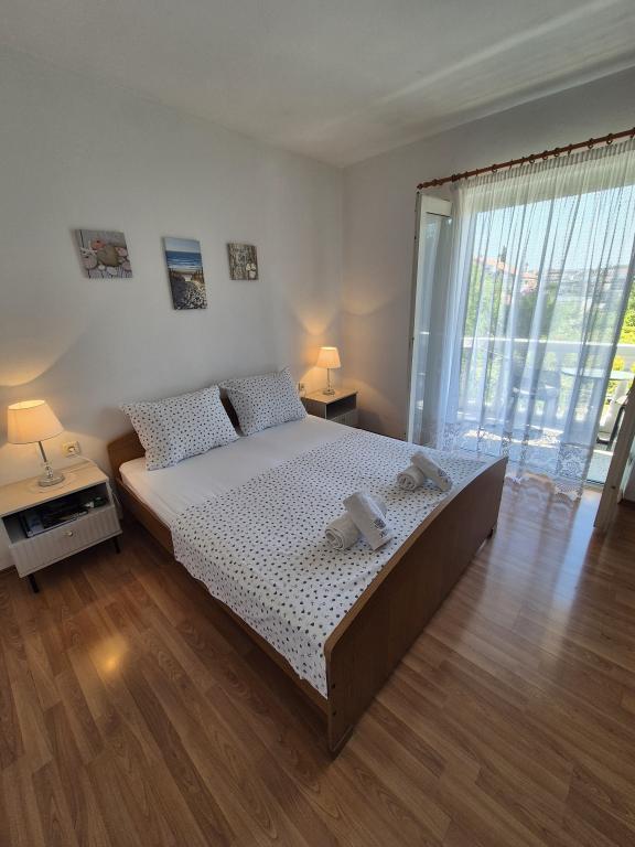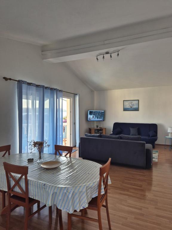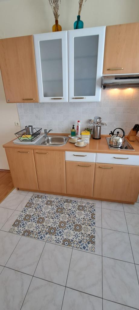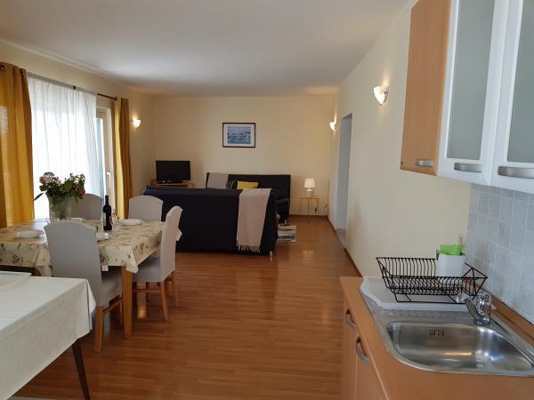 Apartamenty Kristina znajdują się zaledwie 150-200 m od centrum i plaży, są dość przestronne, z licznymi udogodnieniami, aby goście czuli się komfortowo i jak w domu. Wszystkie trzy apartamenty są w pełni wyposażone w kuchnię, salon (wszystkie sofy są rozkładanymi łóżkami), klimatyzację, telewizor (kanały satelitarne). Dwa apartamenty o powierzchni 90 m² (na 1. i 2. piętrze) są jasne, przestronne, z tarasem o powierzchni 20 m² z widokiem na morze i mają dwie przestronne sypialnie, a każdy pokój ma łazienkę i wentylator. Apartament o powierzchni 40 m² ma balkon o powierzchni 5 m². Jest jedna sypialnia o powierzchni 15 m² z łazienką, klimatyzacją i lodówką (na korytarzu). Bezpłatne Wi-Fi jest dostępne w całym obiekcie, a na korytarzu przy wejściu znajduje się mała biblioteka (półka z broszurami, książkami w kilku językach obcych, czasopismami). Przed domem znajduje się duży parking. Rezerwacje, warunki i więcej, patrz Notatki. Kalendarz rezerwacji jest aktualizowany. Czekamy na Państwa przybycie!