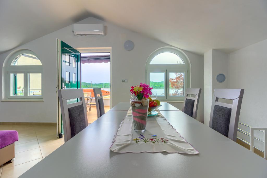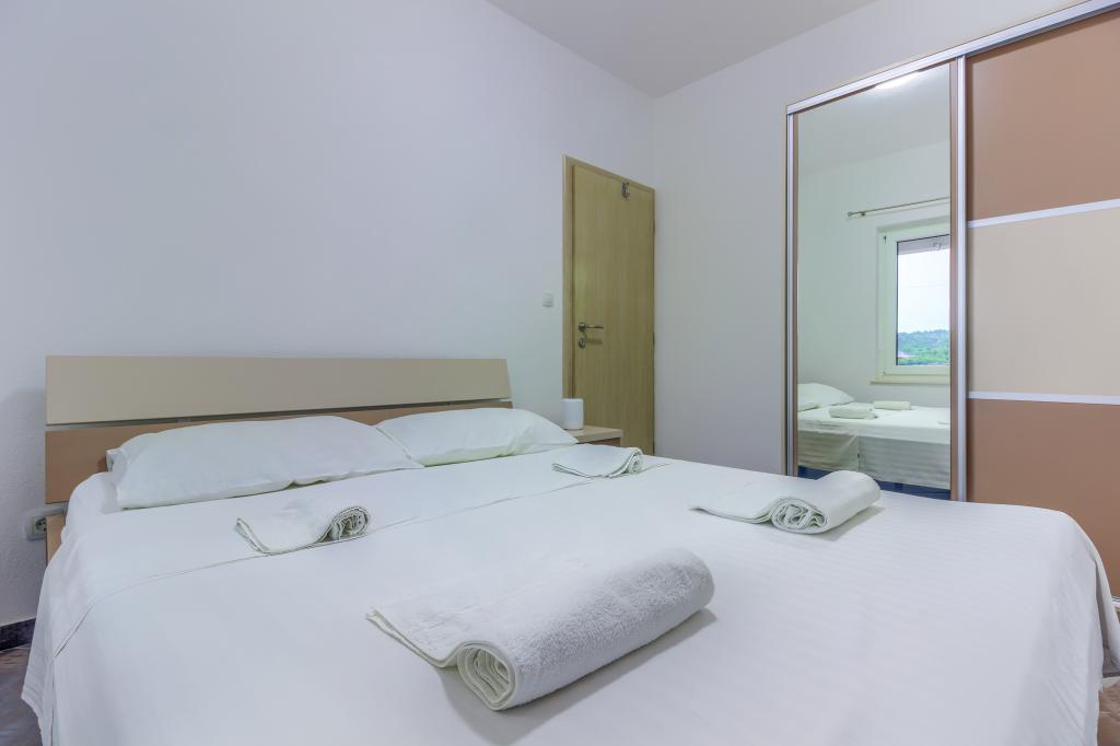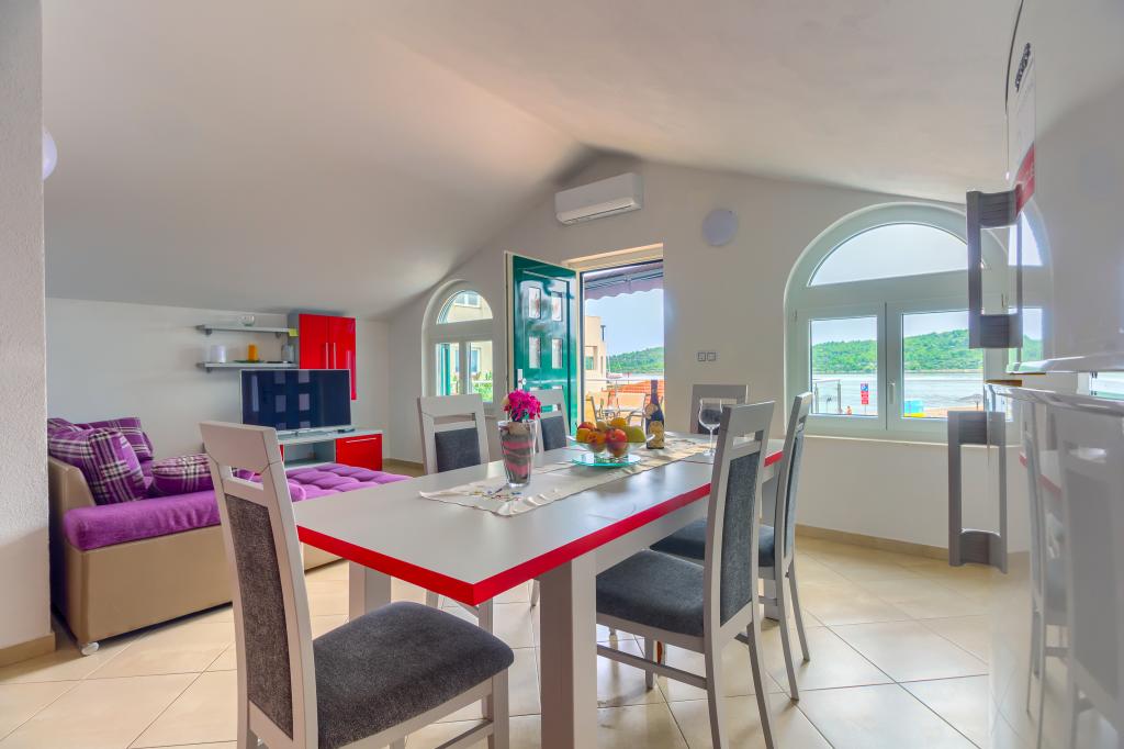 Brand new piękny apartament z tarasem i widokiem na okolicę. Położony w cichej i spokojnej okolicy, zaledwie kilka metrów od morza. Cena obejmuje: klimatyzację, TV, internet, parking, grill. ,
