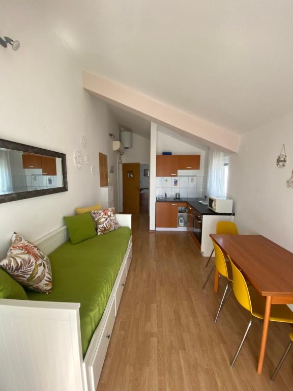 Apartamenty są dokładnie takie jak na zdjęciu. Nowe ładne meble, bardzo czysty i schludny. Parking. Gospodarze są bardzo przyjaźni i pomocni. Plaża jest 1-2 minut spacerem od apartamentu, idealne dla rodzin dla dzieci. To miejsce jest wygodne wystarczająco dużo udogodnień dla rodzin i młodzieży. Jeśli nie chcesz być stale w tym jest to świetna lokalizacja na wycieczki - Samochód jest bardzo blisko do Parku Narodowego Krka, Murter, Pula. Polecam! Będziemy z powrotem !!!