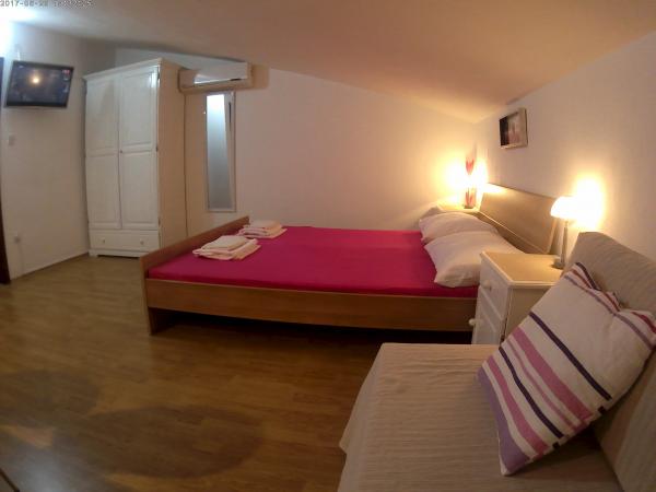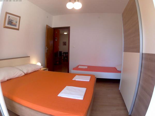 Opłata jest wliczone w cenę. Dokument potwierdzający rezerwację przy rezerwacjiTo, jak ci wspaniali ludzie nas przyjęli, trudno opisać słowami – wspaniali, mili, zawsze dostępni. Nawet nie zdążyliśmy dobrze dotrzeć, gospodarz, pan Neven, wniósł dwie walizki na pierwsze piętro do apartamentu jak młody człowiek, częstując figami… a do tego cudowna i kochana żona Snježana. Apartament jest wyposażony jak w domu: mnóstwo naczyń, ręczniki… Schludnie i czysto jak w aptece. Plaża, centrum i sklep Plodine są oddalone o około 10 minut spacerem. Jesteśmy bardzo zadowoleni, na pewno wrócimy.