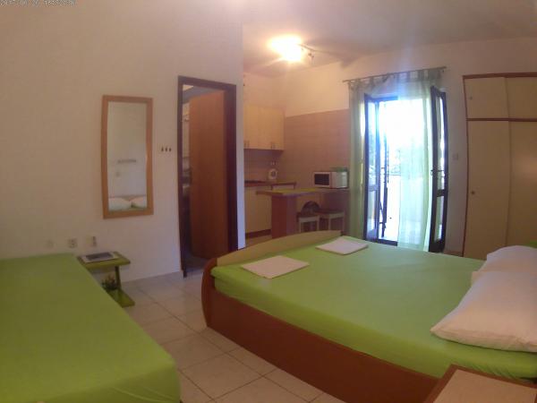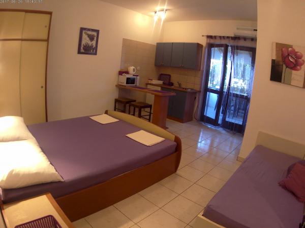 Studio jest czyste, schludne i wyposażone we wszystko, co niezbędne do przyjemnego wypoczynku. jest wystarczająco dużo naczyń, szklanek, ręczników kuchennych, ręczników i wszystkich innych niezbędnych drobiazgów, które uprzyjemniają pobyt... łóżko jest najwygodniejsze ze wszystkich apartamentów, w których do tej pory mieszkaliśmy. spokojna i cicha okolica. blisko plaży, centrum i sklepów. strzeżony parking. drodzy i mili gospodarze! czysta 10!