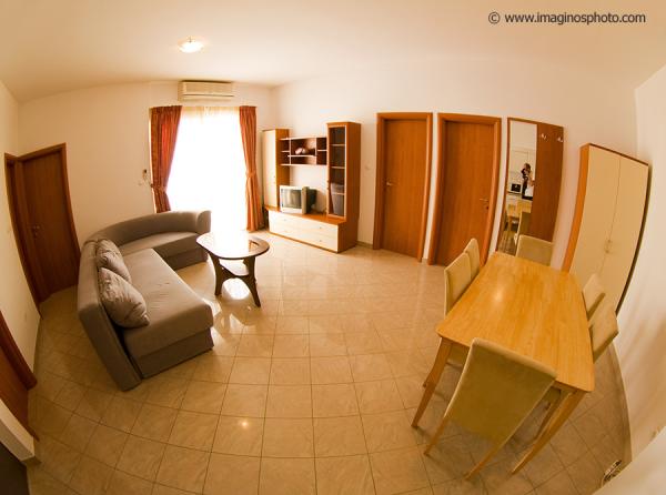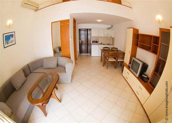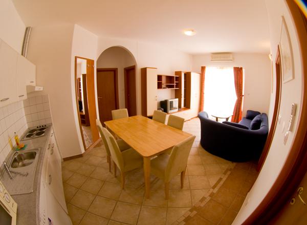 Opłata nie wliczone w cenę.Akceptujemy zwierzęta domowe, dopłata wynosi 12 EUR/zwierzę/dzień. Opłata klimatyczna wynosi dodatkowo 2 EUR/osobę/dzień; dla dzieci w wieku od 12 do 18 lat opłata klimatyczna wynosi 1 EUR/osobę/noc (dzieci poniżej 12 lat nie płacą opłaty klimatycznej). Apartamenty są typu A2+2, A4+2, A6+2, a rozkładana sofa dla dwóch osób w salonie kosztuje 18 EUR/osobę/dzień. Przy pobytach krótszych niż 7 nocy cena ulega zmianie. Łóżeczko dziecięce na życzenie – bezpłatnie.