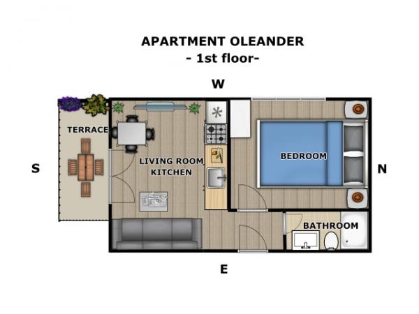 Apartament dla dwóch osób z dwoma dostawkami (35 m2)