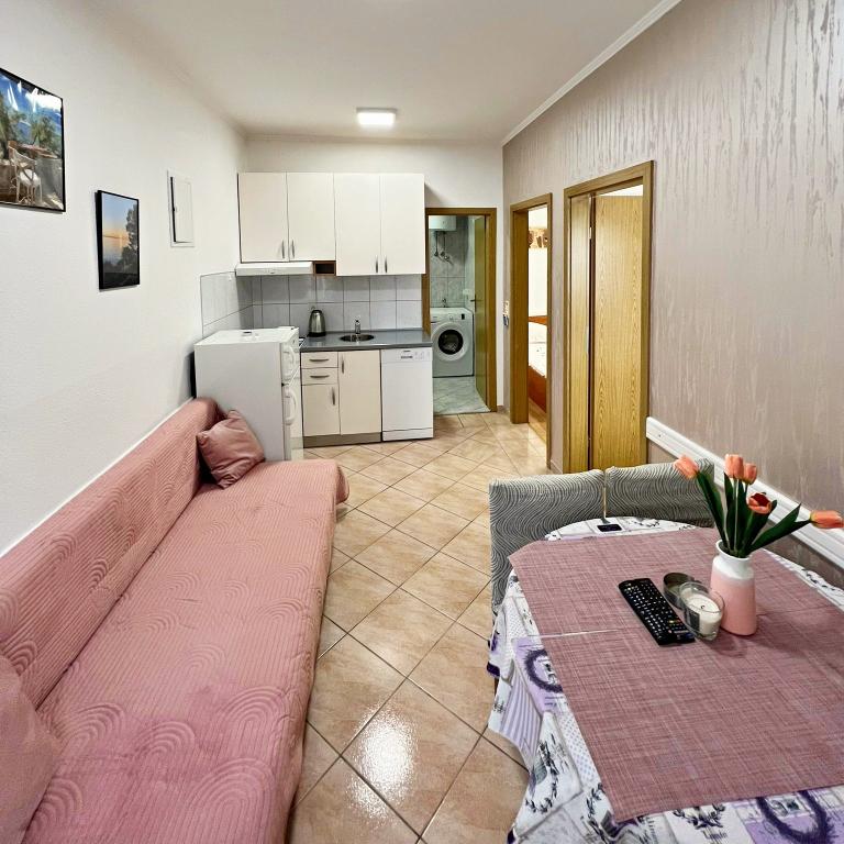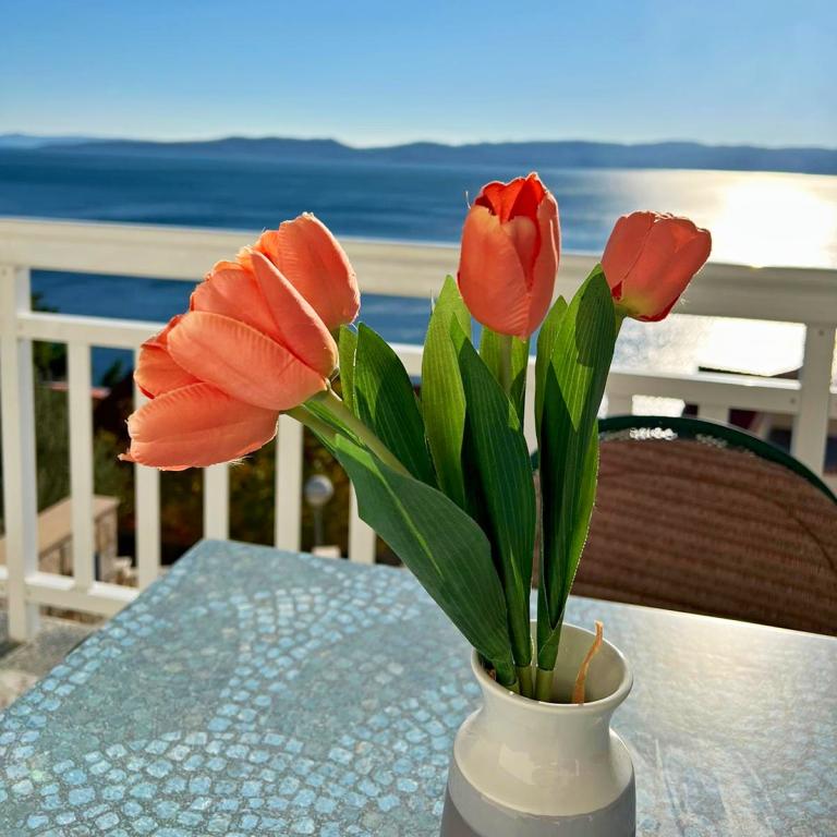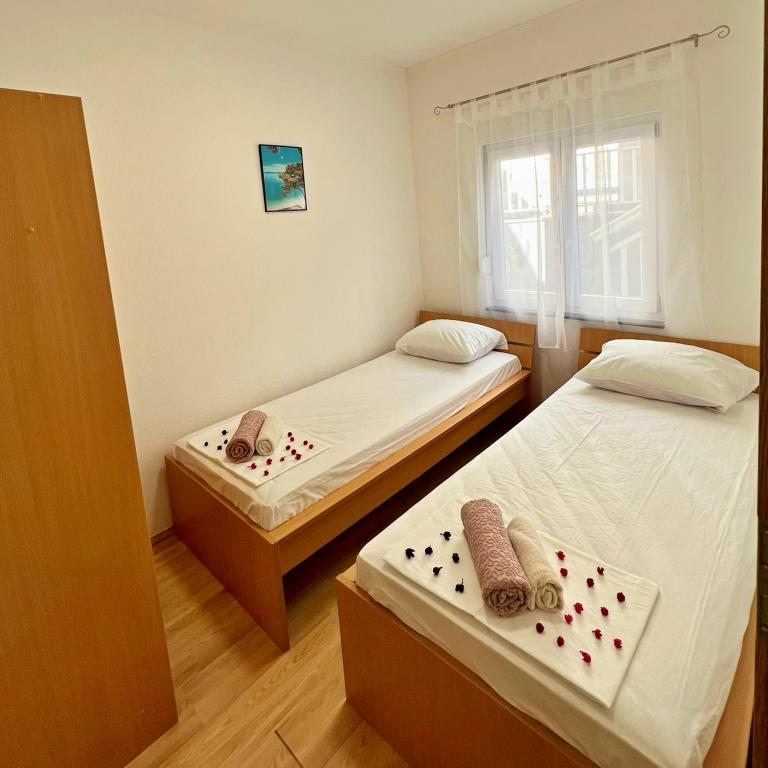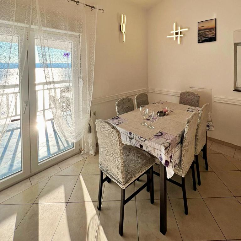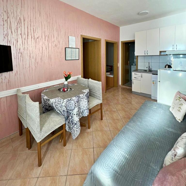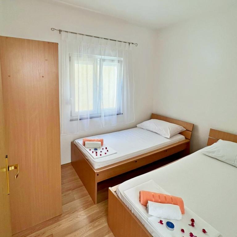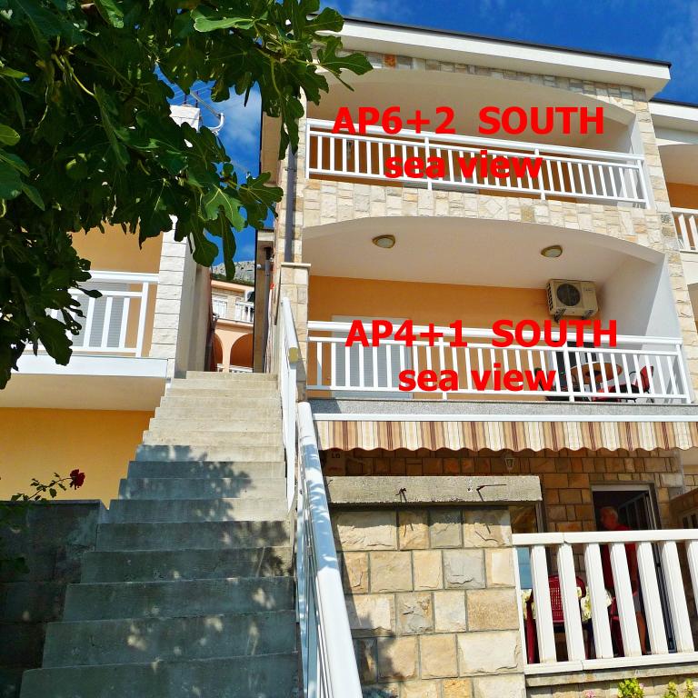 Oferujemy trzy apartamenty: >> APARTAMENT A6+2 na drugim piętrze – 3 sypialnie, salon z kuchnią i jadalnią, łazienka z WC, duży balkon z pięknym widokiem na morze! Klimatyzacja, pralka, zmywarka, kuchenka mikrofalowa, internet Wi-Fi. >> APARTAMENT A4+1 na pierwszym piętrze – 2 sypialnie, salon z kuchnią i jadalnią, łazienka z WC, duży balkon z pięknym widokiem na morze! Klimatyzacja, pralka, zmywarka, kuchenka mikrofalowa, internet Wi-Fi. >> APARTAMENT A4+1 na pierwszym piętrze – 2 sypialnie, salon z kuchnią i jadalnią, łazienka z WC, taras bez widoku na morze. Klimatyzacja, pralka, zmywarka, kuchenka mikrofalowa, internet Wi-Fi.