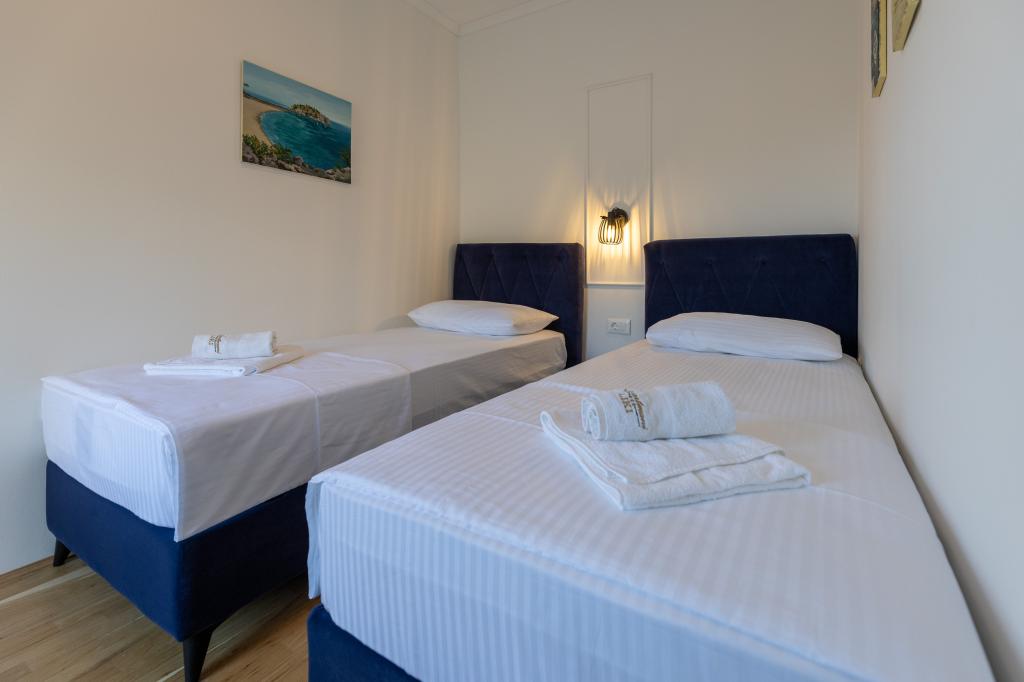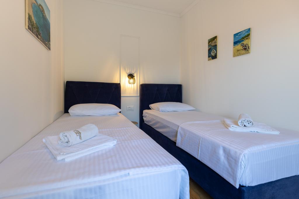 W pełni wyposażone i nowoczesne apartamenty w spokojnej dzielnicy dźwiękami. Obiekt znajduje się 5 minut spacerem do plaży, miasta i restauracji. Z tarasów roztacza się wspaniały widok na morze.