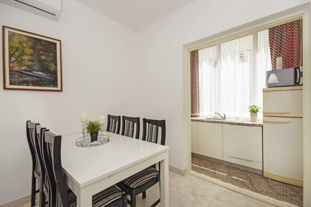 Apartament MK położony jest w spokojnej wiosce rybackiej Podaca, która charakteryzuje się czystym morzem, łagodnym klimatem i pięknymi plażami. Apartament składa się z 2 sypialni, dużej kuchni z jadalnią, jednego małego balkonu i dużego z widokiem na morze. Znajduje się na 1 piętrze domu i zajmuje powierzchnię 100m2. W każdej sypialni znajduje się łóżko podwójne i trzecie łóżko, a także oddzielna łazienka i klimatyzacja. Obiekt położony jest 80 metrów od pięknej betonowej plaży i zaledwie 200 metrów od naturalnej, kamienistej plaży w zatoce Vala. Podaca połączona jest autostradą z takimi miastami jak Makarska (30 km), Split (98 km), Dubrownik (115 km), a w pobliżu znajdują się sanktuarium w Medziugorju (55 km), wodospady Kravica (65 km) i miasto Mostar (85 km). Połączona jest promenadą z pobliskimi miastami, m.in. Zaostrogiem, Bristem i Gradacem. Goście mają dostęp do bezpłatnego parkingu, bezpłatnego WiFi i wspólnego kominka. W apartamencie zapewniono pościel i 2 ręczniki na osobę. Oczekujemy Państwa przyjazdu i życzymy przyjemnego pobytu i wypoczynku.