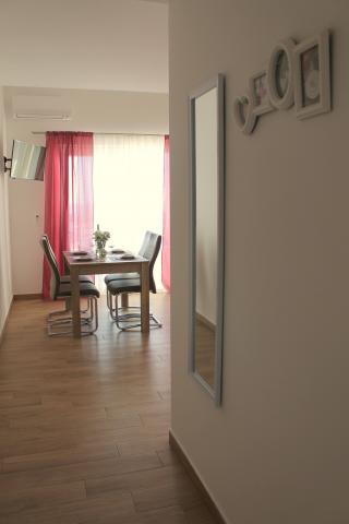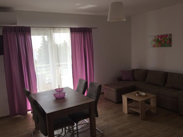Mieszkanie jest piękne. Czysto, ładnie urządzone, przewiewne. Posiada łazienkę i kolejną oddzielną toaletę. Klimatyzacja, TV zarówno w salonie jak iw sypialni. Wszędzie jest blisko - plaża znajduje się tuż przy ulicy. I piękna plaża z dużą ilością cienia. Sklep znajduje się dosłownie 20 metrów od mieszkania. Poza tym kiosk, restauracja, piekarnia, park... 2 km od Zaostroga, nadmorskiej promenady i jesteś tam w pół godziny. Mieszkanie posiada parking strzeżony. Wszystko jest cudowne i mamy tylko słowa pochwały. Zarówno dla mieszkania, jak i dla właścicielki Thei, która jest cudowna, miła, skromna i zawsze dostępna. Na pewno wrócimy!