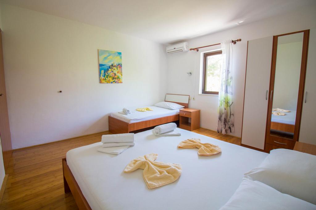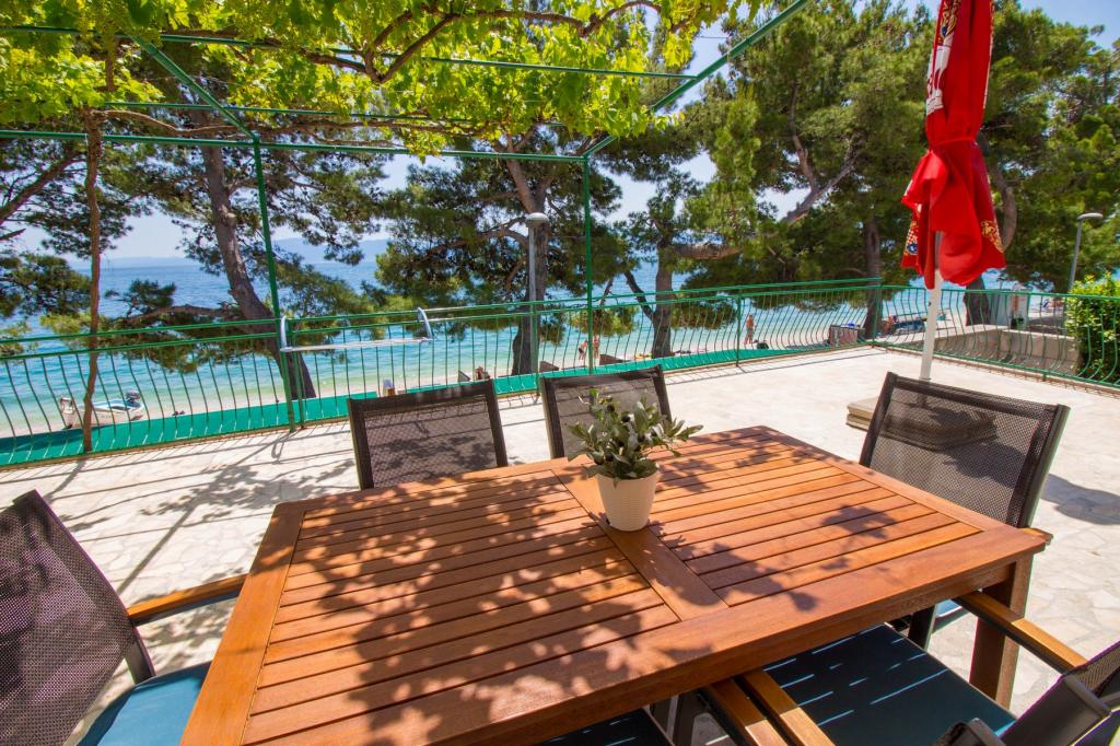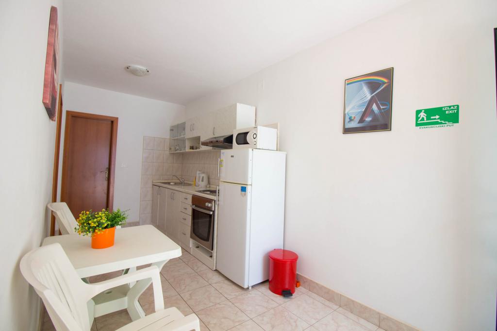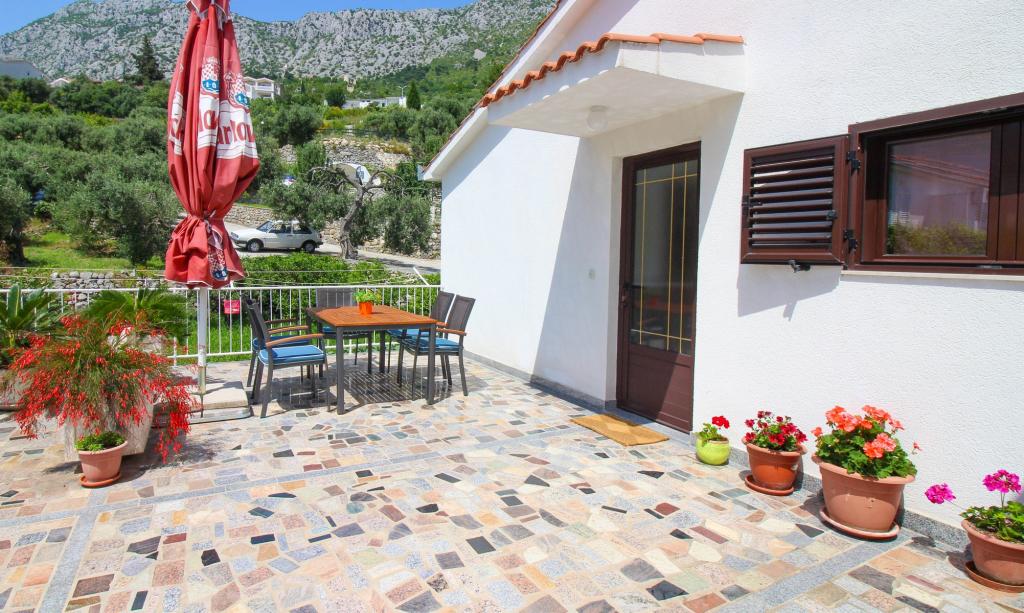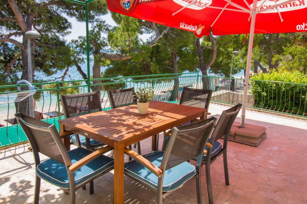 Apartamenty Kosovic II znajdują się na rodzinnej posiadłości na Podaca, znanej z wielkiej tradycji turystycznej. Odległość od morza i plaży wynosi zaledwie 10 metrów od tłumów i autostrady, co czyni tę lokalizację bardzo interesującą dla rodzin z małymi dziećmi. Plaża jest kamienista z dużą ilością naturalnego cienia, który tworzy sosny. Wzdłuż plaży znajduje się nowo wybudowana promenada o długości 5 km, idealna na wieczorne spacery i relaks, ale także dla turystów preferujących bardziej aktywne wakacje z bieganiem, rolkami i jazdą na rowerze. Wszystkie 3 apartamenty mają osobne wejścia, klimatyzację i sieć WIFI. Pojemność apartamentu wynosi 14 łóżek i 2 dodatkowe łóżka. Pięć miejsc parkingowych jest zabezpieczonych w nieruchomości otaczającej dom w wyznaczonym miejscu. Na terenie obiektu znajduje się ponad 200 drzew oliwnych i spokojna, rodzinna restauracja Mendi z ponad 35-letnią tradycją. Restauracja z grillem i owocami morza oferuje różnorodne pizze.