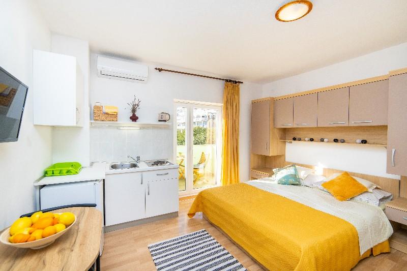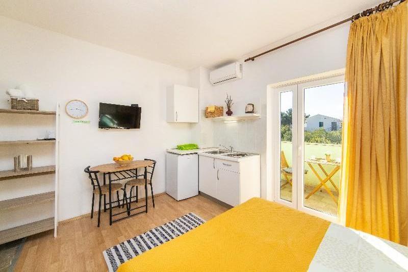 Apartamenty położone są w spokojnym miejscu 50m od morza. W pobliżu znajdują się sklepy, poczta oraz placówka służby zdrowia. Parking jest zapewniony. Wi-Fi i klimatyzacja w cenie.