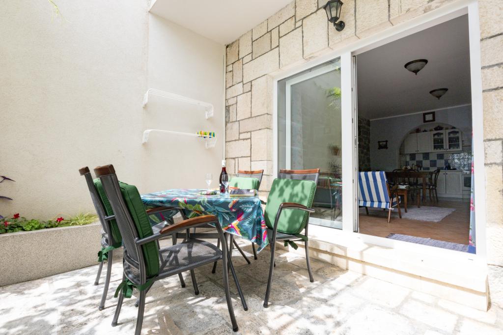 Apartament jest cudowny. Wszystko widać na zdjęciach. To naprawdę spełnienie marzeń, umeblowany w stylu przeszłości zmieszanym z teraźniejszością. Bardzo przemyślanie urządzone pokoje, wszystkie wystarczająco duże i byłam pod wrażeniem detali, które sprawiają, że apartament jest naprawdę wyjątkowy. Ponieważ znajduje się na parterze, jest zimno nawet bez użycia klimatyzacji, chociaż jest ona również dostępna. Pani Ana, właścicielka, jest wspaniałą gospodynią i jej słowa są prawdziwe. Jeśli czegoś potrzebujesz, zawsze znajdzie rozwiązanie. Podane odległości są również prawdziwe. Apartament jest czysty. Plaża jest również cudowna z naturalnym cieniem sosen. Woda jest krystalicznie czysta, zielono-niebieska. Krótko mówiąc, polecam.
