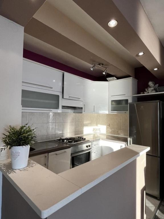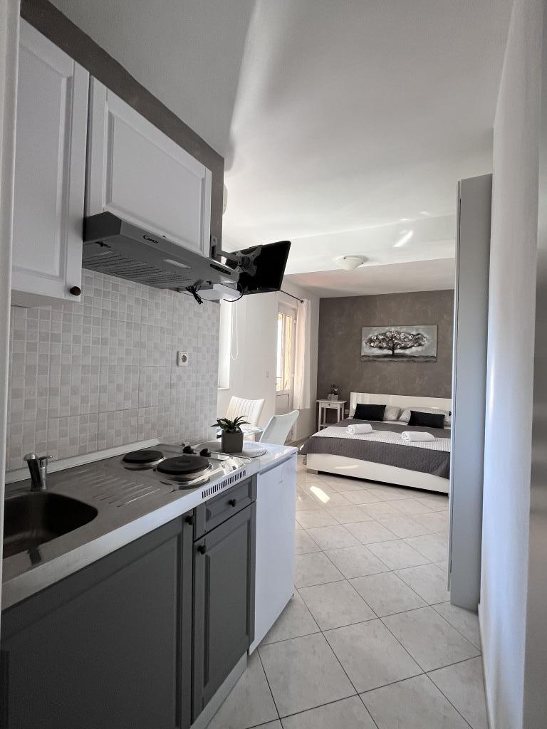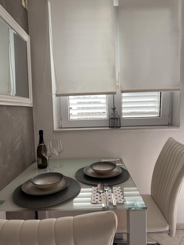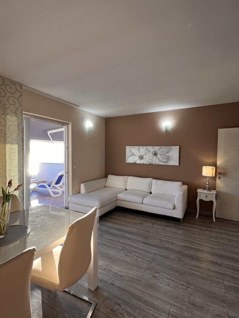Mieszkanie A4+1 jest duże i wygodne. To dwie zamykane sypialnie z prywatnymi łazienkami i dodatkowa trzecia łazienka dostępna z korytarza z pralką. W kuchni zmywarka i dodatkowa lodówka na napoje. Klimatyzacja w każdym pokoju. Czysto. Bardzo miła właścicielka