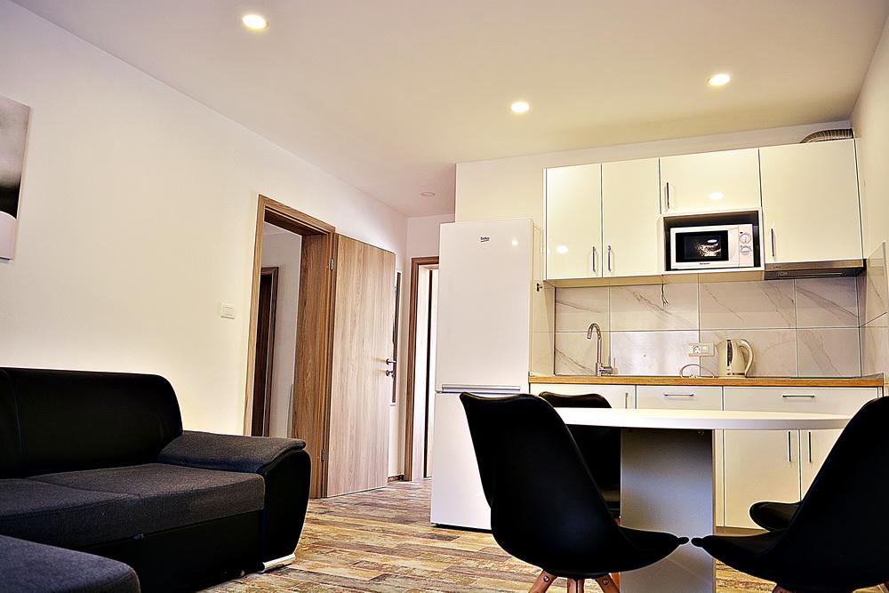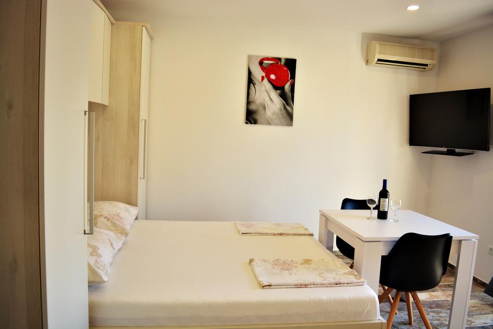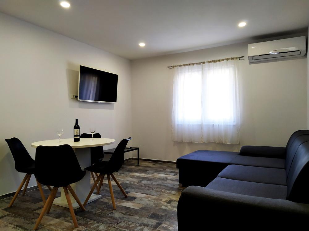 Apartamenty Jure oferują 3 apartamenty w ofercie: apartament A6 1 dla 7 osób, A2 2 dla 4 osób i S2 dla 2 osób. Wszystkie apartamenty są nowocześnie umeblowane i umeblowane, wygodne i niedrogie oraz mają wszystko, czego potrzeba do pełnego wypoczynku. A6 1 ma 140 m2, 3 pokoje i duży salon z rozkładaną sofą. Jest wyjątkowo odpowiedni dla rodzin z dziećmi. Wszystkie apartamenty posiadają: kuchnię, jadalnię, łazienkę, parking, Wi-Fi, klimatyzację, a największy apartament A6 1 ma klimatyzację w każdym pokoju i ma 4 łazienki. Zwierzęta nie są akceptowane, zakaz palenia w apartamencie (balkon i pokoje na zewnątrz - dozwolone). Jesteśmy do Państwa dyspozycji w przypadku jakichkolwiek pytań lub rezerwacji.