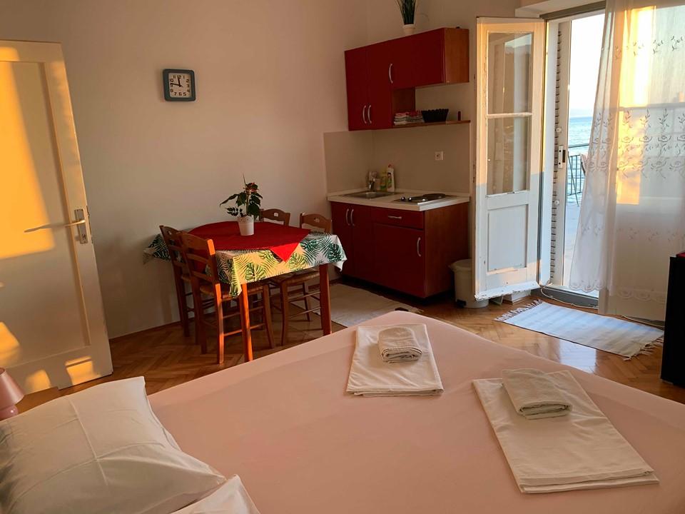 Bardzo ładne mieszkanie w odległości kilku metrów od morza w pięknej miejscowości Małe. Czyste, gustownie urządzone i cel. Taras w dużym parkiecie, tylko apartament z niesamowitym widokiem na morze i duża część Podgory.Velmi dobrych negocjacji z właścicielem. Gorąco polecam!