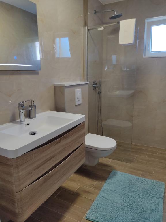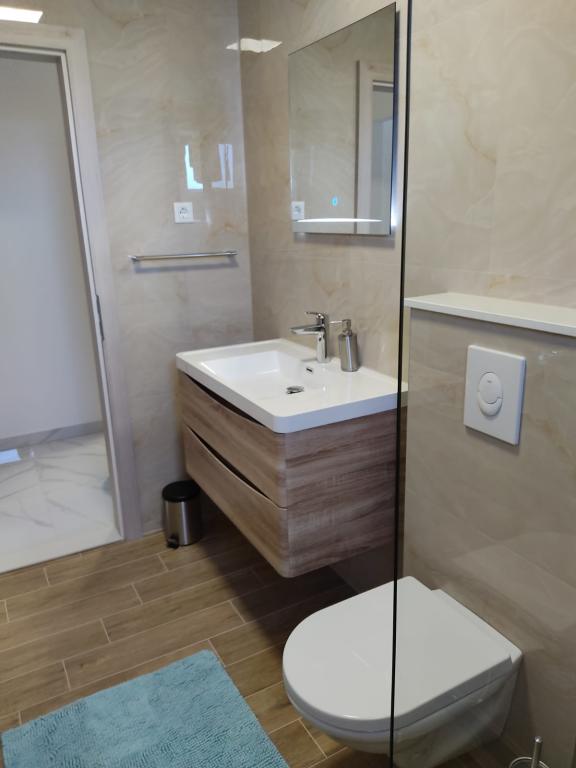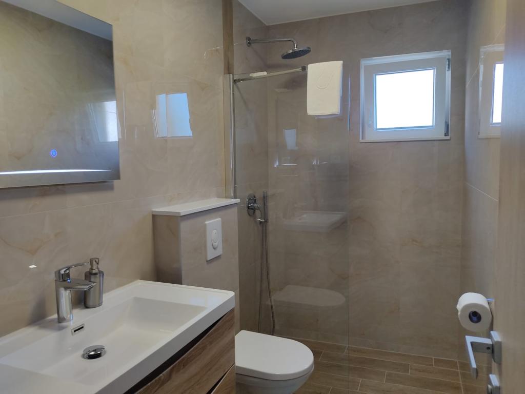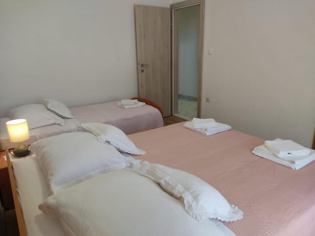 Jak do tej pory najlepsze zakwaterowanie w Chorwacji. (a jest to nasz 10 razy) Apartament 8+1 - bardzo przestronny, czysty, klimatyzowany (3xAC), dostępne 2 aneksy kuchenne, 2 lodówki (co przy takiej liczbie osób jest bardzo przydatne ) kuchnia wyposażona we wszystko co jest potrzebne, 2 łazienki (prysznic, wanna) i co najważniejsze fantastyczne taras z przepięknym widokiem na morze, góry, miasto. Chociaż mapy google nie pokazują drogi na plażę to nie martw się :) jest prawda ... malownicza ścieżka pomiędzy oliwnymi drzewkami i okolicznymi domkami (zejście zajmowało nam 7 minut). Pokoje bardzo przestronne z dużymi łóżkami i szafkami na rzeczy, dwa wychodzą na największy taras, kolejne dwa na balkony w kierunku gór. Najważniejsza rzecz - WSPANIALI właściciele, bardzo mili i pomocni. Już dawno nie spotkaliśmy tak gościnnych i pomocnych ludzi, reagujących na każdą sugestię, prośbę, zapytanie. Polecam W 100%