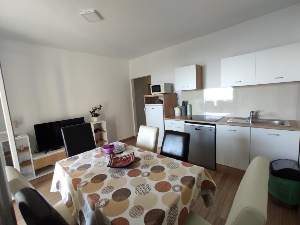 Apartament bardzo ładny, czysty i przestronny, wyposażony w zmywarkę i pralkę co jest dużym plusem. Przepiękny widok z tarasu na morze i wyspy Hvar i Brać. Właściciele Iva, Ante i Tinka bardzo mili, uprzejmi i pomocni, powitalny drink oraz słodycze dla dzieci. Jesteśmy 3 raz w tym apartamencie i polecam z całego serca. Do plaży 5 minut spacerkiem, przez most nad ruchliwą ulica, między drzewkami oliwnymi.