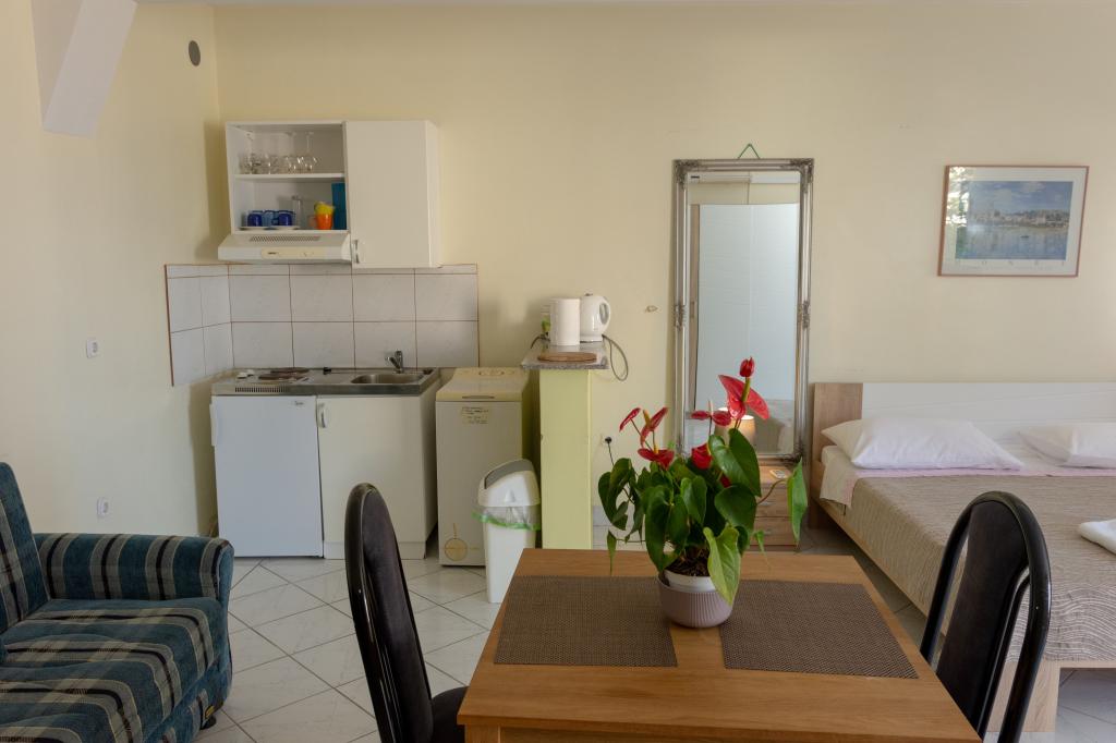 Opłata jest wliczone w cenę.Doskonały apartament typu studio z ładnym tarasem, na którym można napić się kawy z pięknym widokiem na morze. Gospodarze są bardzo przyjaźni i gościnni. Wszystkie zalecenia dotyczące mieszkania.