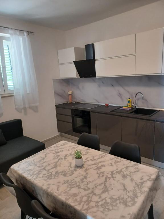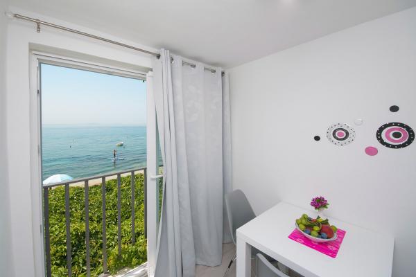 Małe studio idealne dla 2 osób w całkiem dobrej cenie. Widok na morze z kuchni i tarasu cudowny. Tamaryszki na plaży dają cień! Nie potrzebujesz parasola. Leżaki dla gości. Blisko sklepu Tommy, gdzie można kupić coś do jedzenia. Bar i restauracja/konoba niedaleko. Fantastyczni właściciele - bardzo pomocni i życzliwi!!!