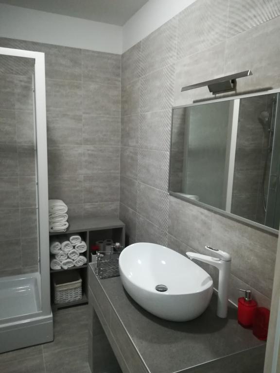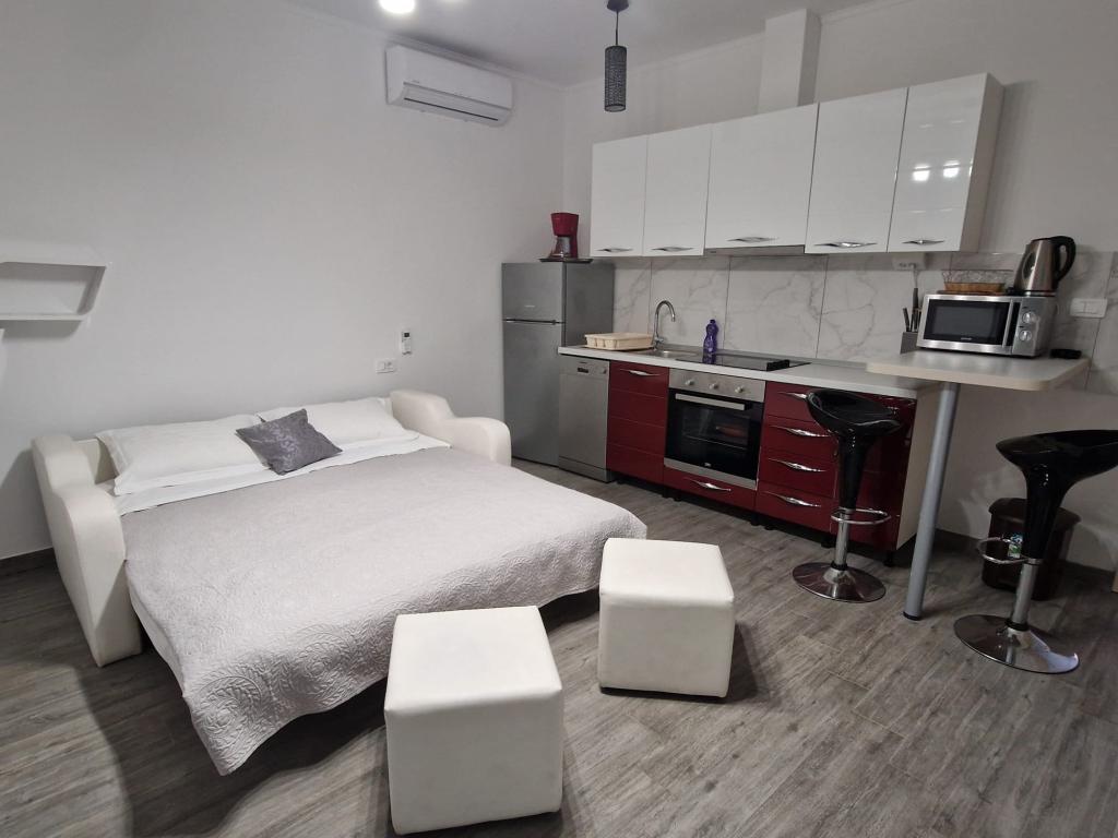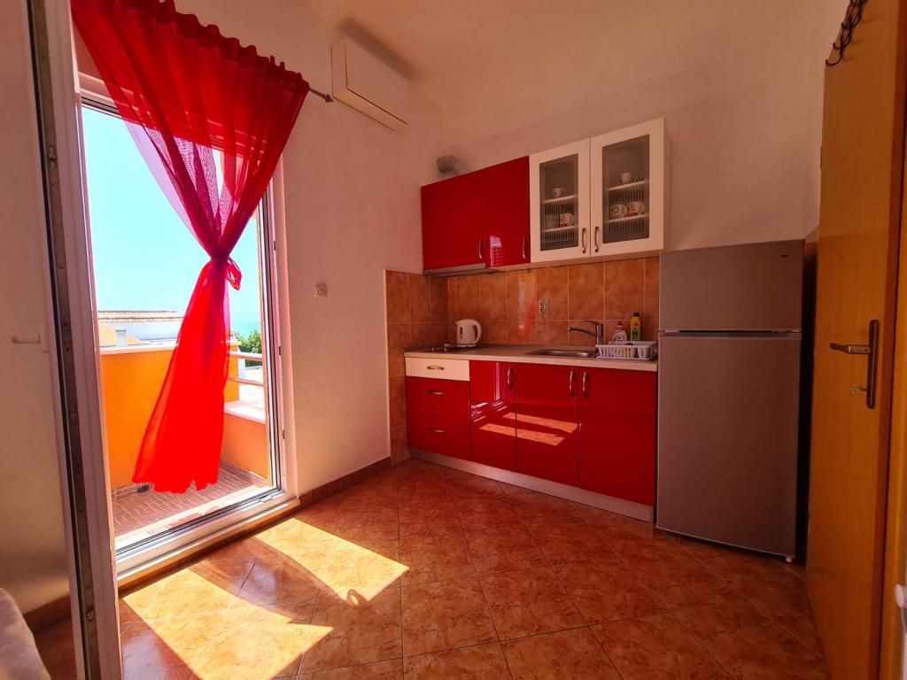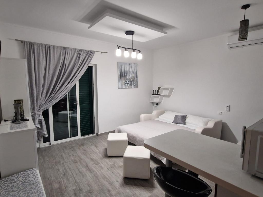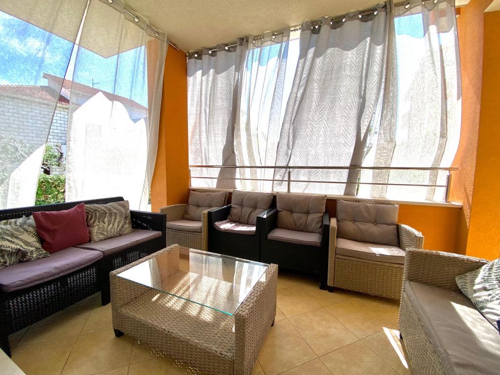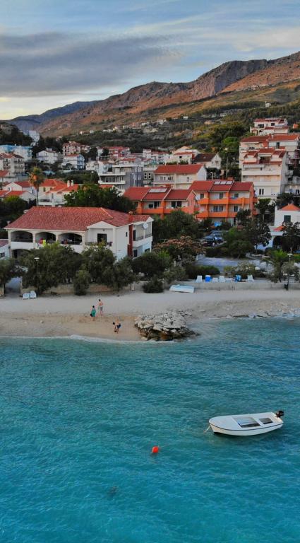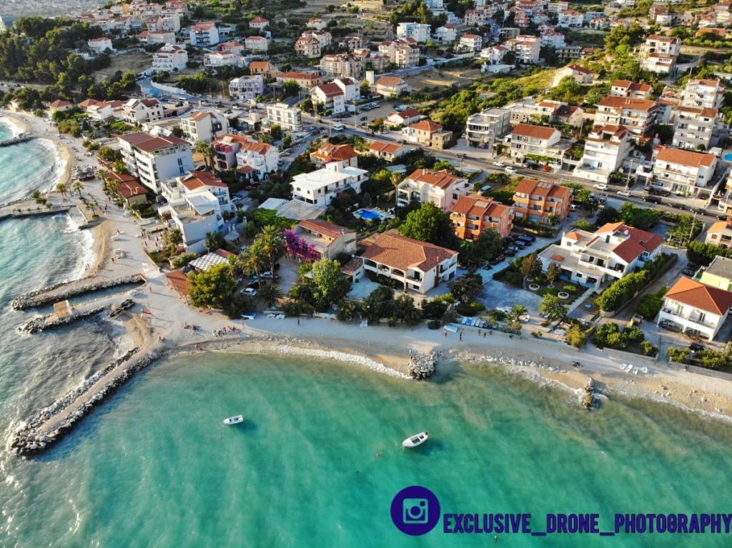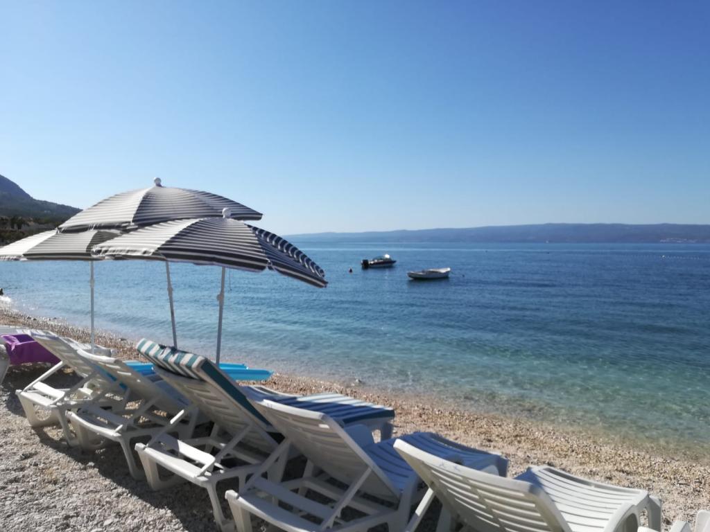Całkowicie nowe apartamenty położone 10 m od morza w cichym otoczeniu. W pobliżu rynek, kawiarnia, piekarnia, apteka. Apartamenty znajdują się 12 km od Splitu, 13 km od Omis. Apartamenty posiadają duże tarasy.