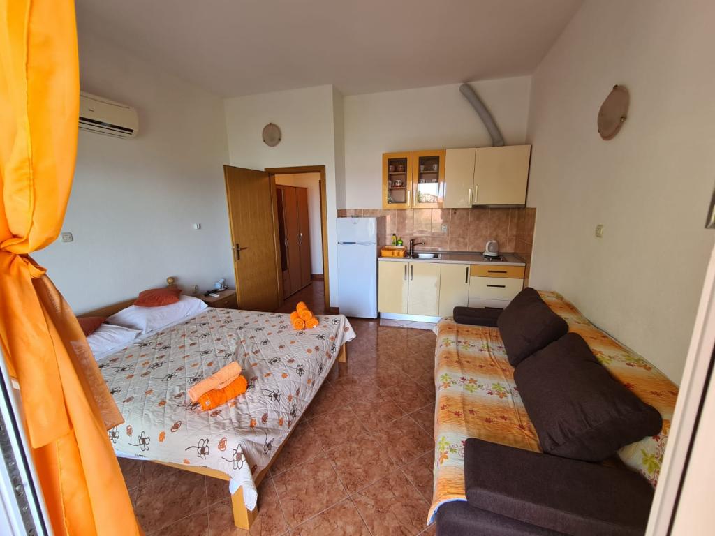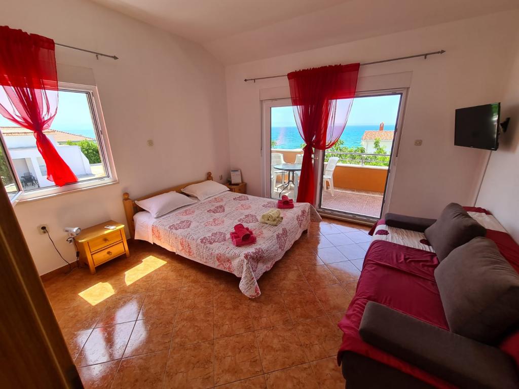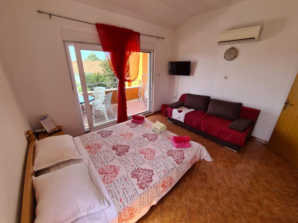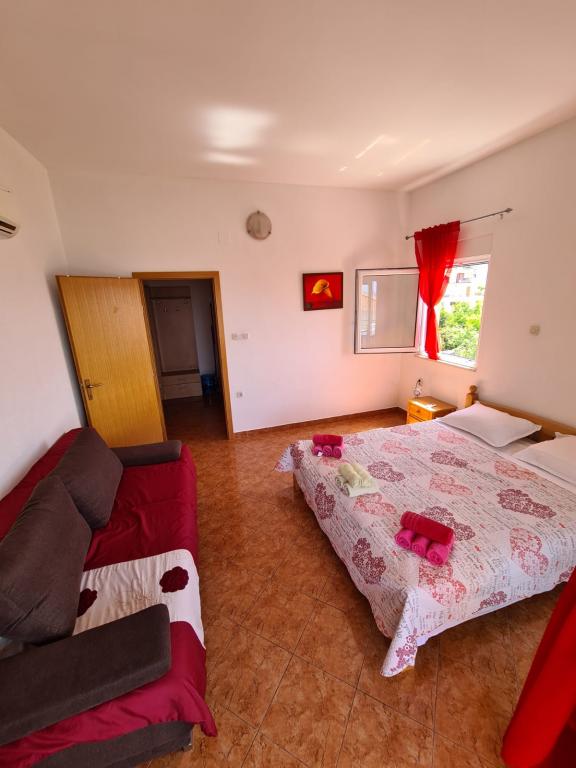 Opłata jest wliczone w cenę.W cenę apartamentu wliczony jest również leżak z parasolem dla lepszej ochrony przed słońcem w gorące letnie popołudnia i poranki. Parking jest wliczony w cenę i znajduje się tuż obok mieszkania. W przypadku rezerwacji na 7 i więcej dni służymy gościom ryby złowione z własnej łodzi oraz brzoskwinie z własnego pola. Sprzedajemy również domowe grzane wino i brandy w niskiej cenie. Oferujemy również oliwę z oliwek domowej roboty, a także sprzedajemy ją w większych ilościach.