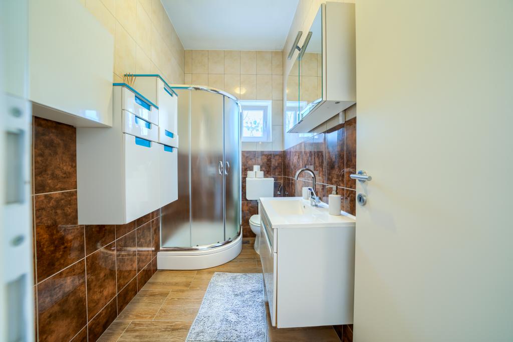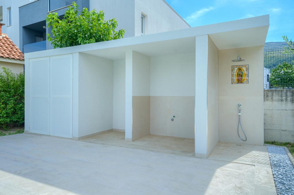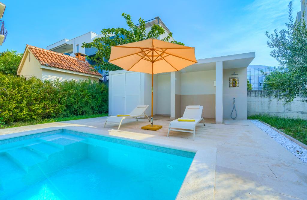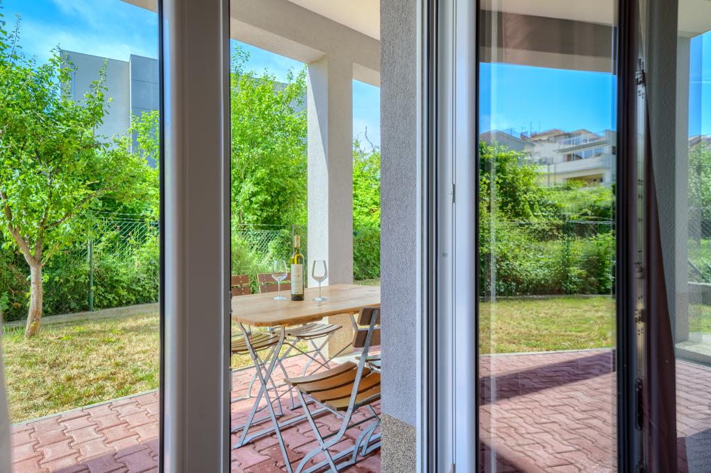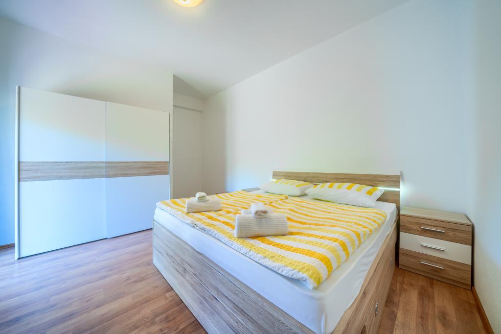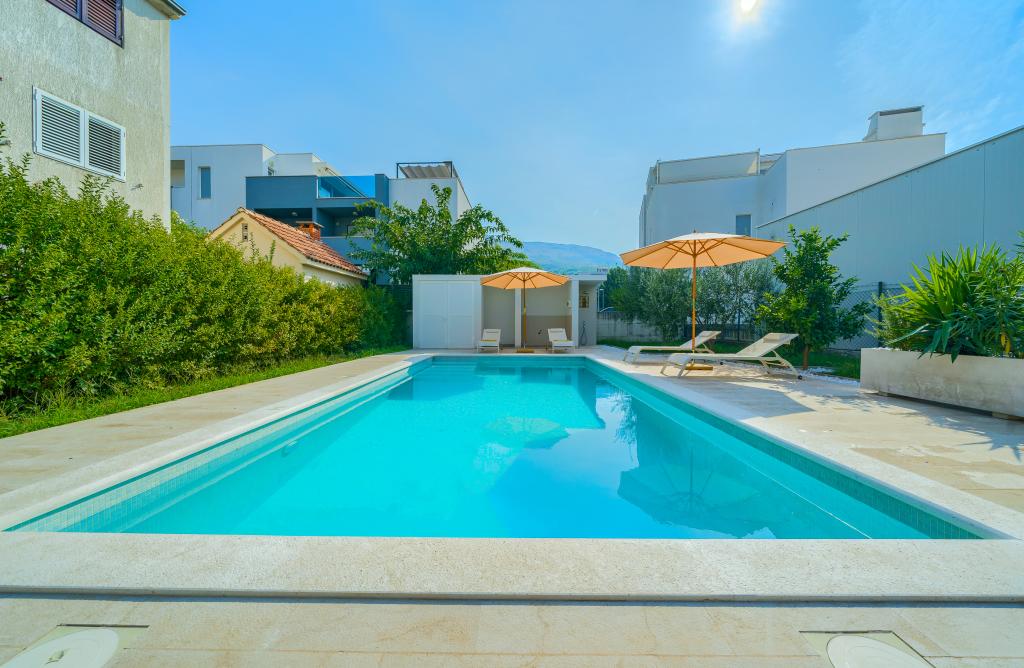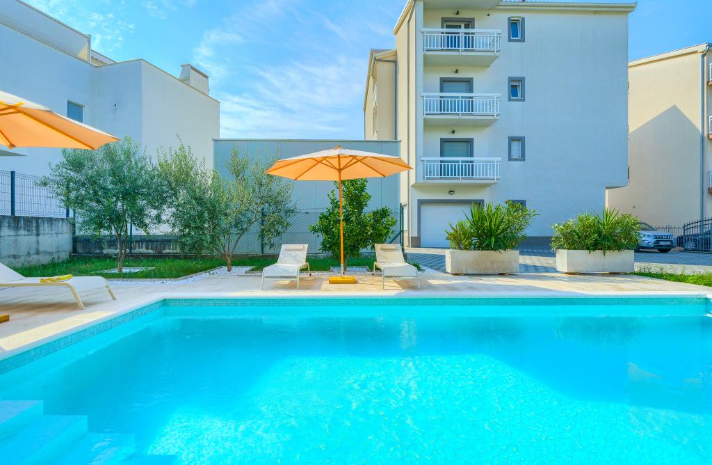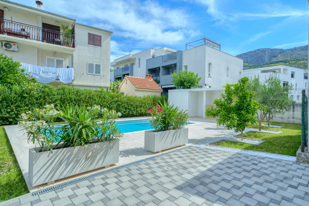 Nowe i nowocześnie wyposażone apartamenty w spokojnej okolicy, położone 200m od morza. Obiekt położony jest 5 minut spacerem od 3 kamienistych plaż, kawiarni, sklepów, restauracji, drogerii, gabinetów lekarskich i aptek. Wszystkie jednostki wyposażone są w klimatyzację, TV, jadalnię, łazienkę i taras. Nowy basen o wymiarach 8x4m jest dostępny wyłącznie dla gości apartamentów.