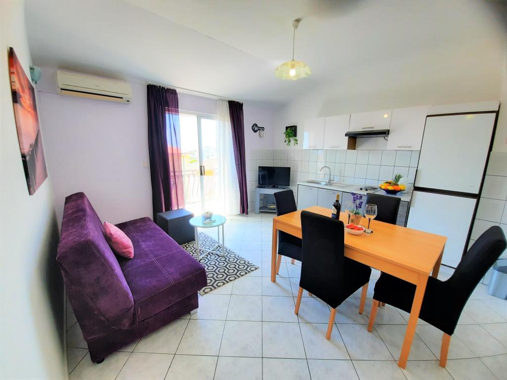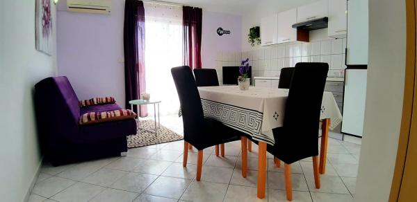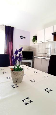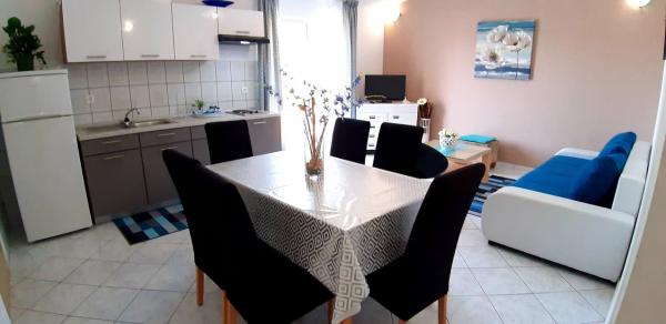 Mieszkanie bardzo czyste i zadbane, ciche. Widok morza. Idealny dla par z dziećmi. Plaża i sklep znajdują się w pobliżu (2 minuty piechotą). Bardzo blisko do Splitu i kilka kilometrów od Omis. Wreszcie, właściciel jest bardzo przyjazny, gościnny i elastyczne. Możesz zarezerwować zamknięte oczy.