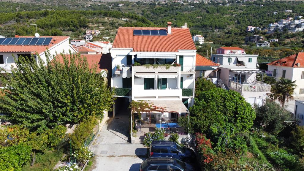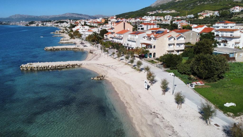 Apartamenty SARA znajdują się w rodzinnym domu, który znajduje się zaledwie 50 m od plaży i morza. Apartamenty Sara znajdują się 6 km od Splitu w kierunku Omiš w Podstranie (Sveti Martin) pod autostradą. Zawartość zakwaterowania: Apartamenty SARA posiadają klimatyzację, TV, bezpłatny dostęp do Internetu, w pełni wyposażoną kuchnię. Do dyspozycji gości Apartamentów SARA na podwórzu domu znajduje się grill oraz altana. Plaża oddalona jest o 30 metrów i znajduje się pod domem, w ogrodzie. Na plaży znajduje się także mała kawiarnia. W promieniu 100 m znajdują się dwa sklepy, sklep mięsny, dwie piekarnie, apteka, lekarz, pediatra, dentysta, kosmetyczka, trzy kawiarnie oferujące również wyżywienie. Na plaży pod domem znajduje się również plac zabaw dla dzieci. Miejsce parkingowe znajduje się na prywatnym, zamkniętym parkingu domu. Każdy apartament może bezpłatnie korzystać z dwóch leżaków na plaży. Witamy w Apartments Sara