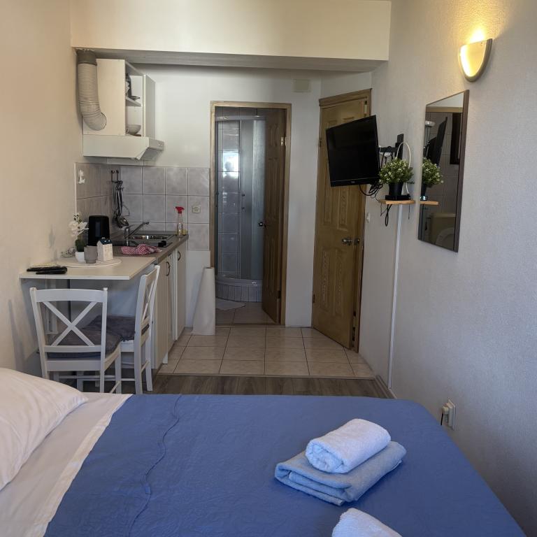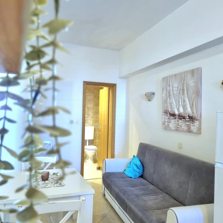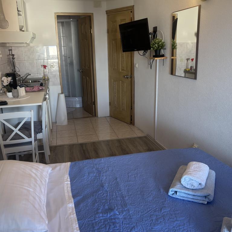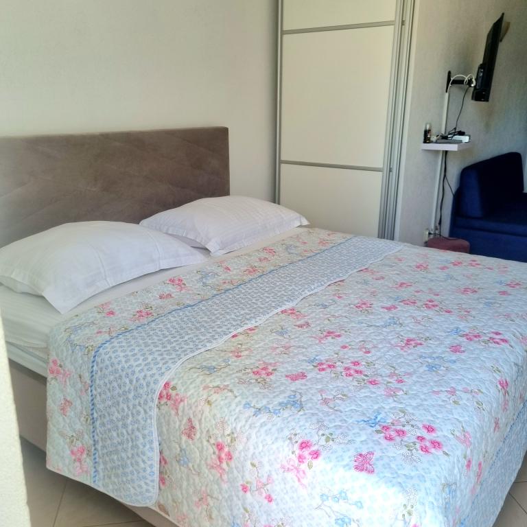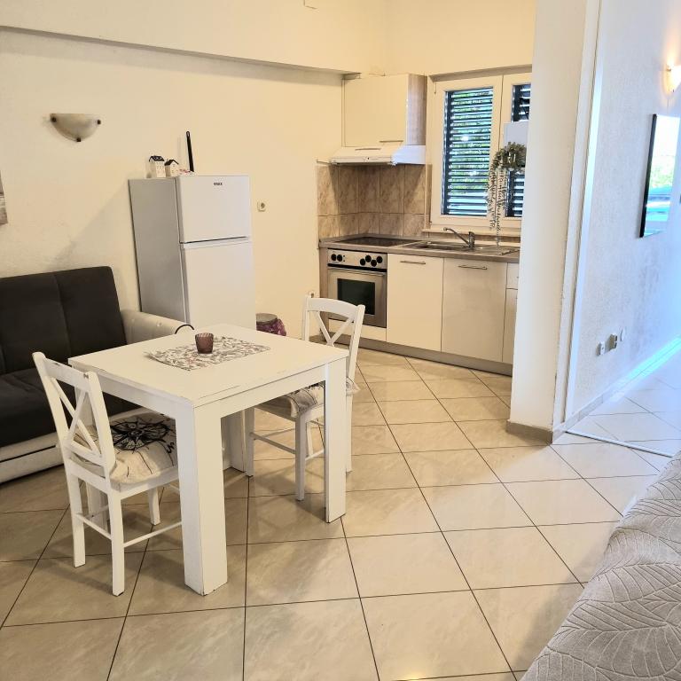 Apartamenty Sara znajdują się w doskonałej lokalizacji, a nasze studio, w którym mieszkaliśmy, było wspaniałe. Masz plażę na minutę, a na plaży masz leżaki i parasol. Tuż obok plaży znajduje się kawiarnia i tylko kilka minut spacerem od restauracji na plaży. Plaża jest czysta, a morze czyste. Również w pobliżu jest dobrze zaopatrzona piekarnia i piekarnia, więc w zasadzie masz wszystko podstawowe. W obiekcie masz również wszystko co niezbędne do ręki, żelazko, włosy, ręczniki i wszystko jest schludne i czyste. Gospodyni Ariela to wspaniała kobieta, która przyjmie Cię i będzie do Twojej dyspozycji na wszystkie Twoje potrzeby. W zasadzie czujesz się jak w domu. Rzeczywiście, wszystkie pochwały i zalecenia dla tego zakwaterowania. Będziesz chciał wrócić ponownie