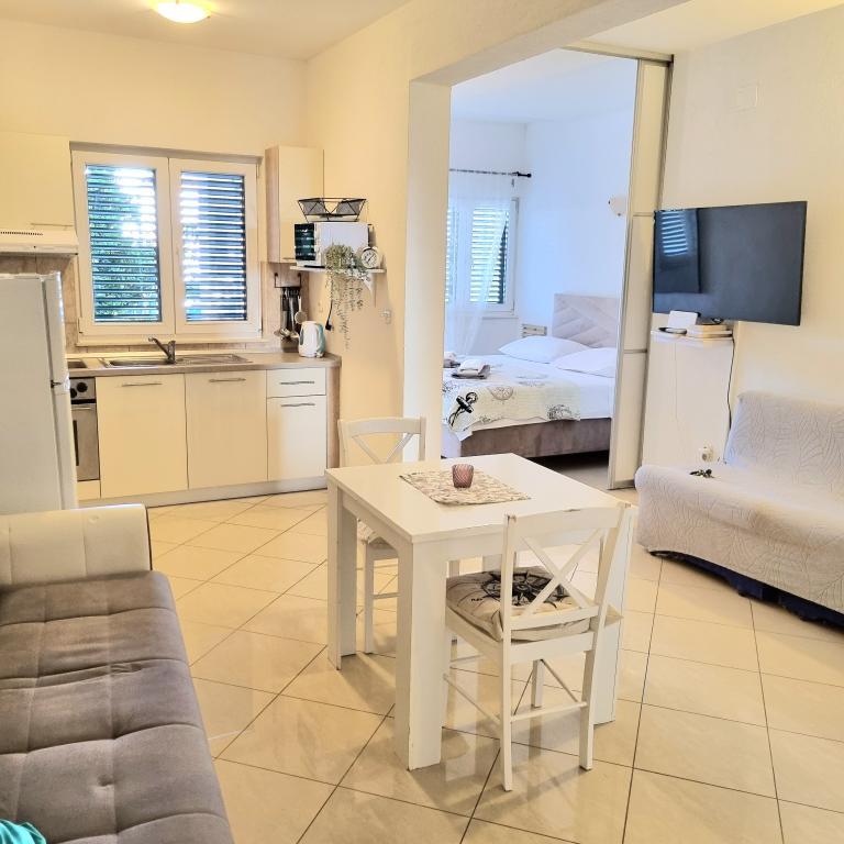 Bywam tu ,co roku pieknie, cieplo, bardzo sympatyczni gospodarze. Lokalizacja swietna, cicho, spokojnie, romantycznie, plaza kilka krokow z darmowymi lezakami, morze czyste, cieple. W poblizu urokliwy Split, z wieloma atrakcjami, Omis, Makarska. Polecam zarowno dla osob szukajacych spokoju, jak i rodzin z dziecmi, bezpieczne podworko z miejscem do grilla i gospodarz zawsze sluzacy pomoca,nawet rybke ze Splitu dowiezie a gospodyni poczestuje wspanialym winem,orzechowka 100 m od apartamentu market, przystanek aytobusowy, jest to tak urokliwe miejsce, ze co roku wracam z przyjemnoscia,czuje sie jak w domu