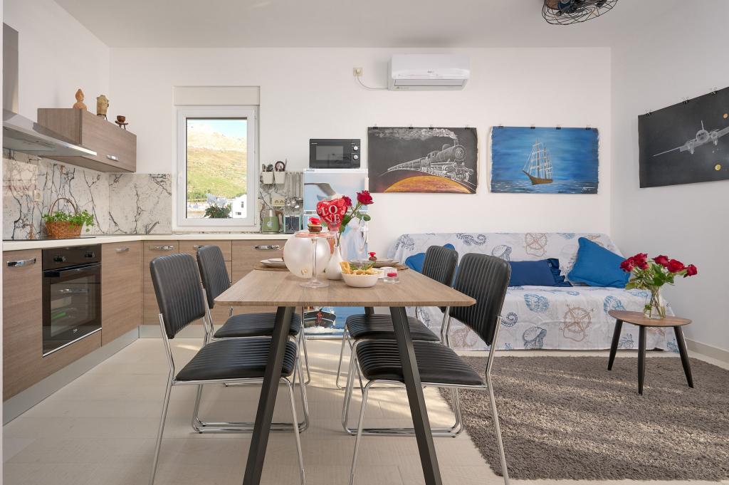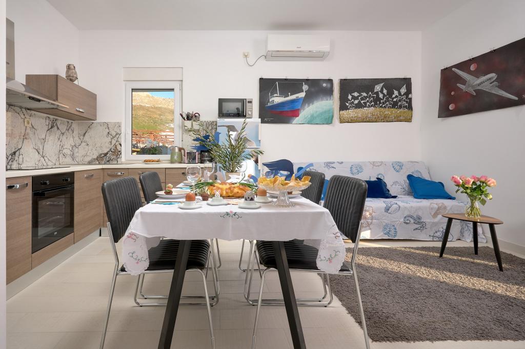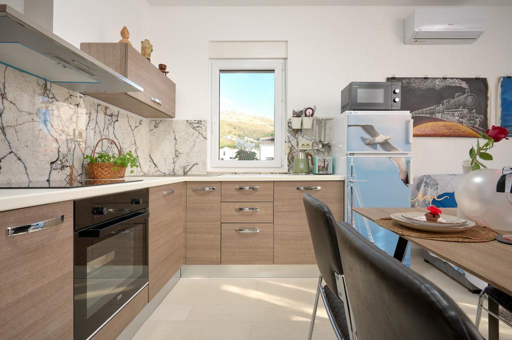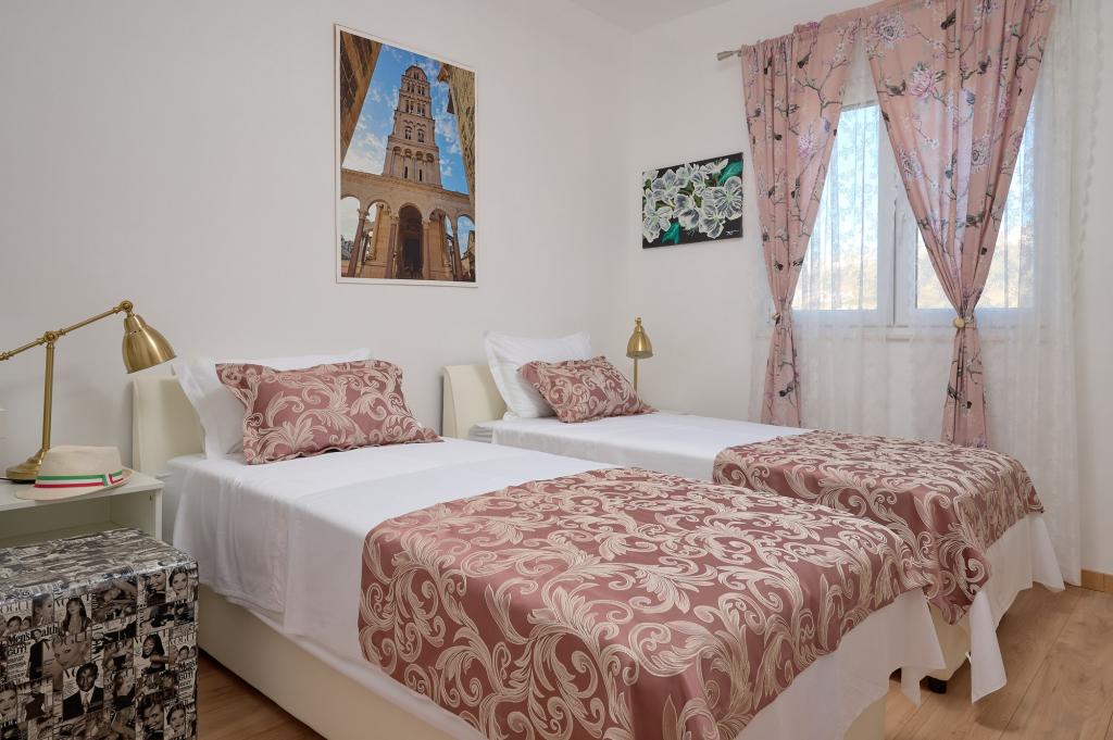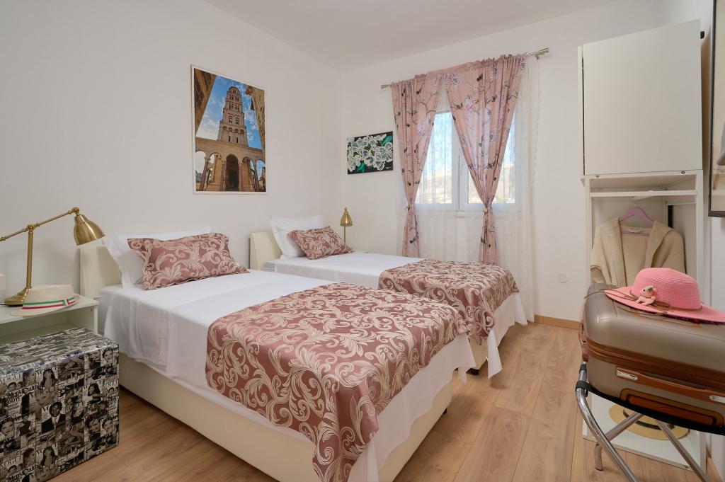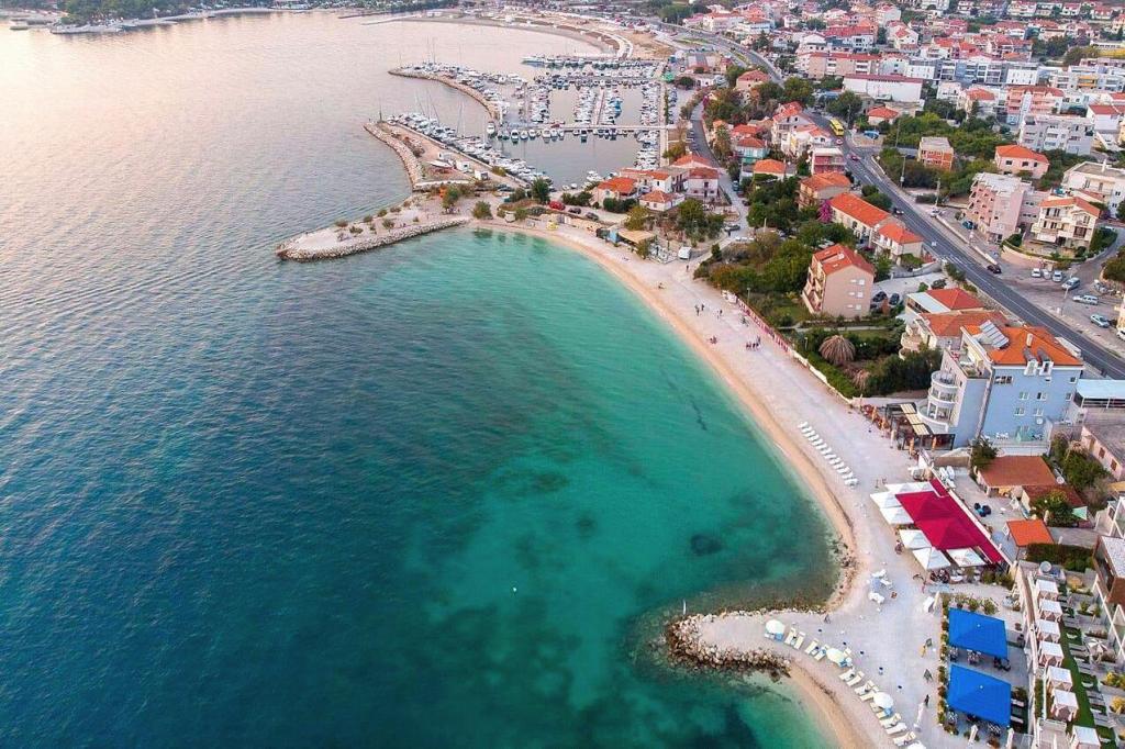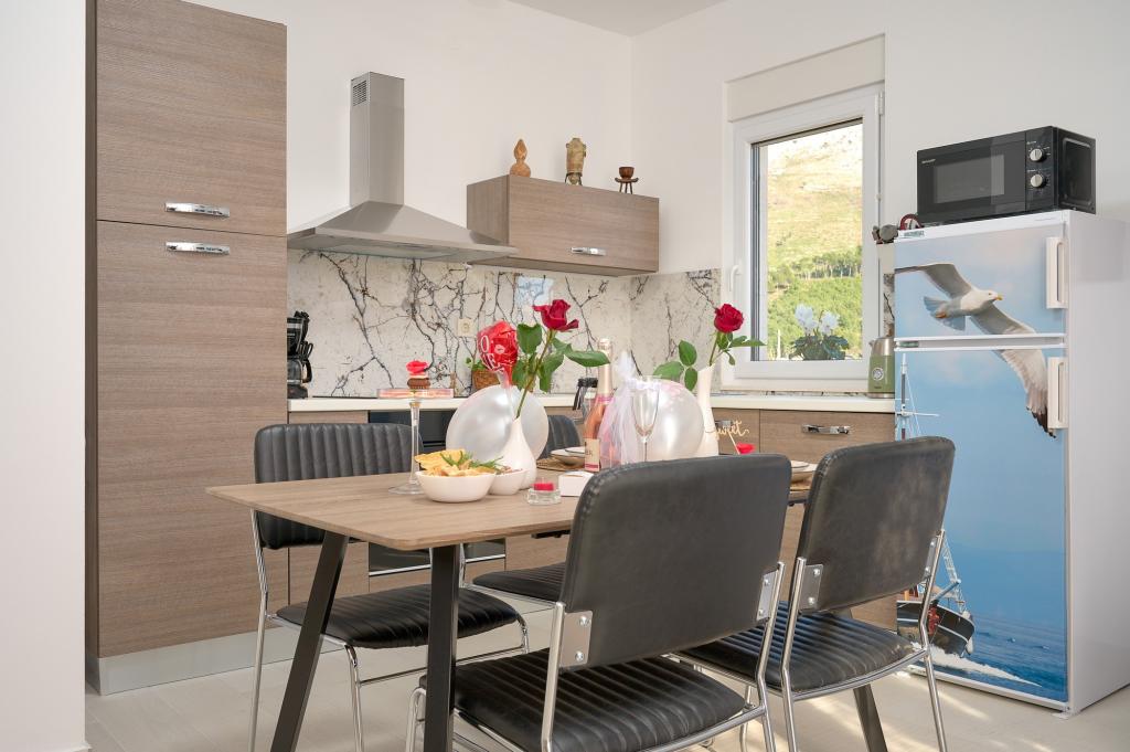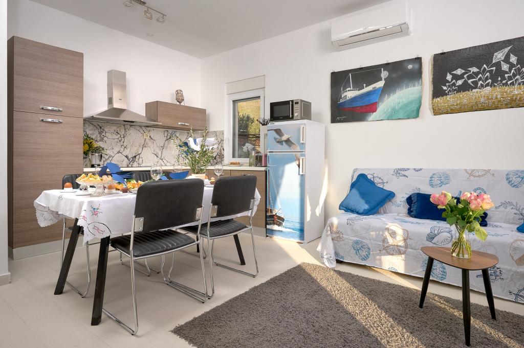 Trzy nowo wyremontowane apartamenty „Sita” znajdują się w Podstranie, tuż nad morzem. Ta nadmorska oaza, szczycąca się dziewiczymi plażami i krystalicznie czystym morzem, jest idealnym miejscem dla rodzin i wszystkich tych, którzy szukają spokojnej przystani w małym miasteczku z ekscytacją i bogactwem kulturowym pobliskiego Splitu. Każdy z naszych apartamentów emanuje przestronnością i komfortem, oferując dwie sypialnie, nowoczesną łazienkę, funkcjonalną kuchnię ze zintegrowanym salonem oraz prywatny balkon z widokiem na morze. Aby zapewnić niezakłócony wypoczynek, każdy apartament został starannie zaprojektowany i wyposażony w nowoczesne udogodnienia: klimatyzację, WiFi, telewizor. Parking znajduje się na terenie obiektu, a bliskość restauracji, sklepów, plaż żwirowych i boisk sportowych oferuje niezliczone możliwości zwiedzania i aktywnego wypoczynku.