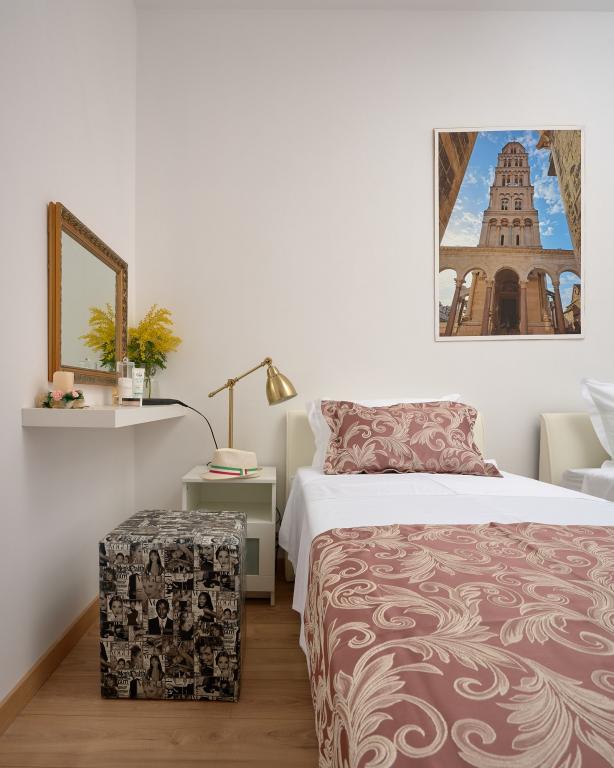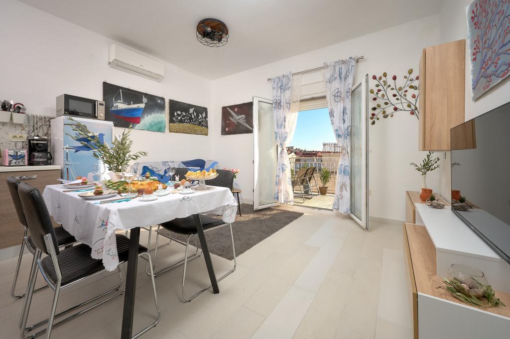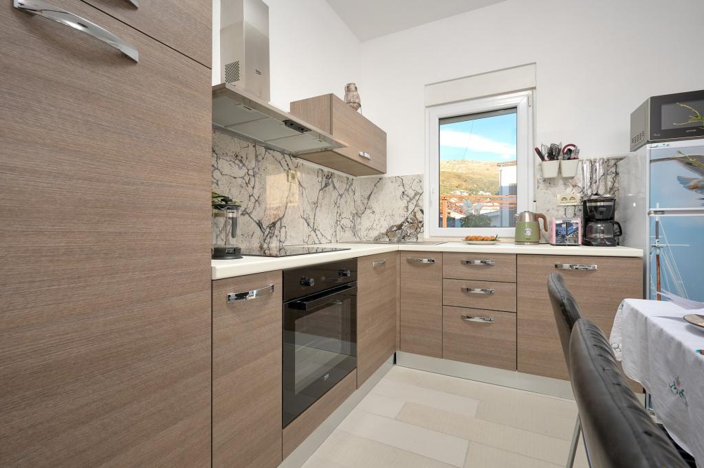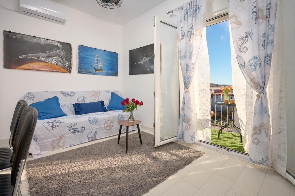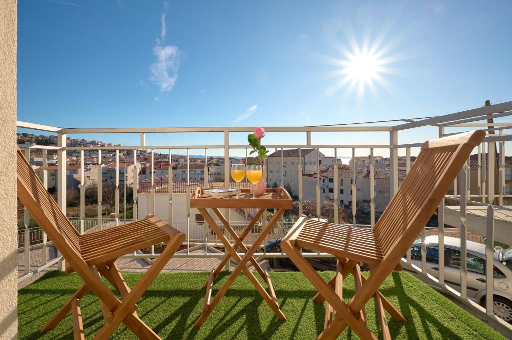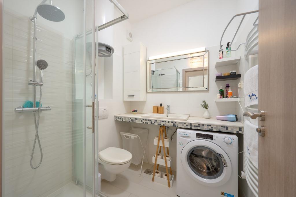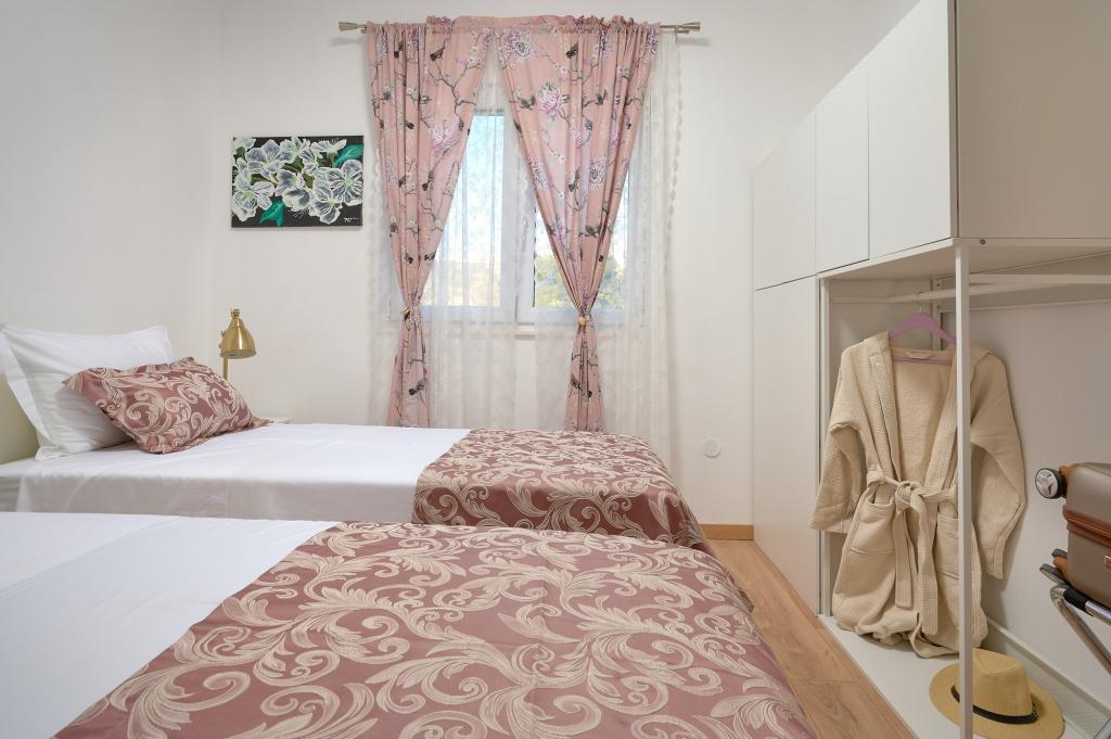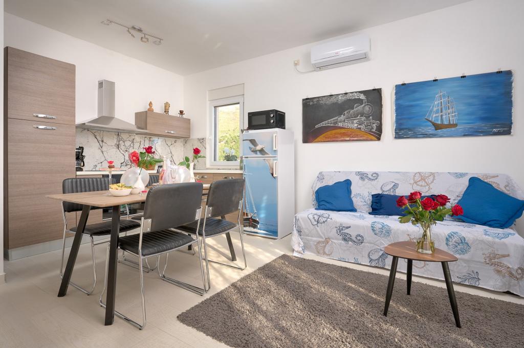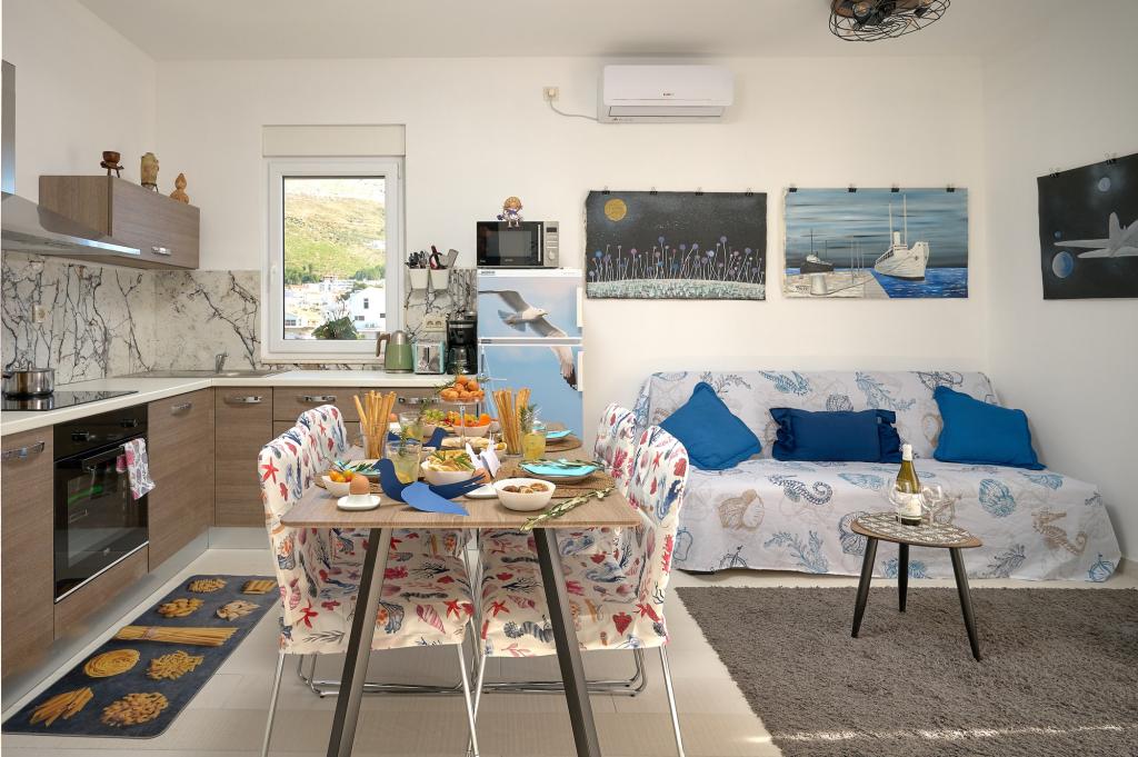 Trzy nowo wyremontowane apartamenty „Sita” znajdują się w Podstranie, tuż nad morzem. Ta nadmorska oaza, szczycąca się dziewiczymi plażami i krystalicznie czystym morzem, jest idealnym miejscem dla rodzin i wszystkich tych, którzy szukają spokojnej przystani w małym miasteczku z ekscytacją i bogactwem kulturowym pobliskiego Splitu. Każdy z naszych apartamentów emanuje przestronnością i komfortem, oferując dwie sypialnie, nowoczesną łazienkę, funkcjonalną kuchnię ze zintegrowanym salonem oraz prywatny balkon z widokiem na morze. Aby zapewnić niezakłócony wypoczynek, każdy apartament został starannie zaprojektowany i wyposażony w nowoczesne udogodnienia: klimatyzację, WiFi, telewizor. Parking znajduje się na terenie obiektu, a bliskość restauracji, sklepów, plaż żwirowych i boisk sportowych oferuje niezliczone możliwości zwiedzania i aktywnego wypoczynku.