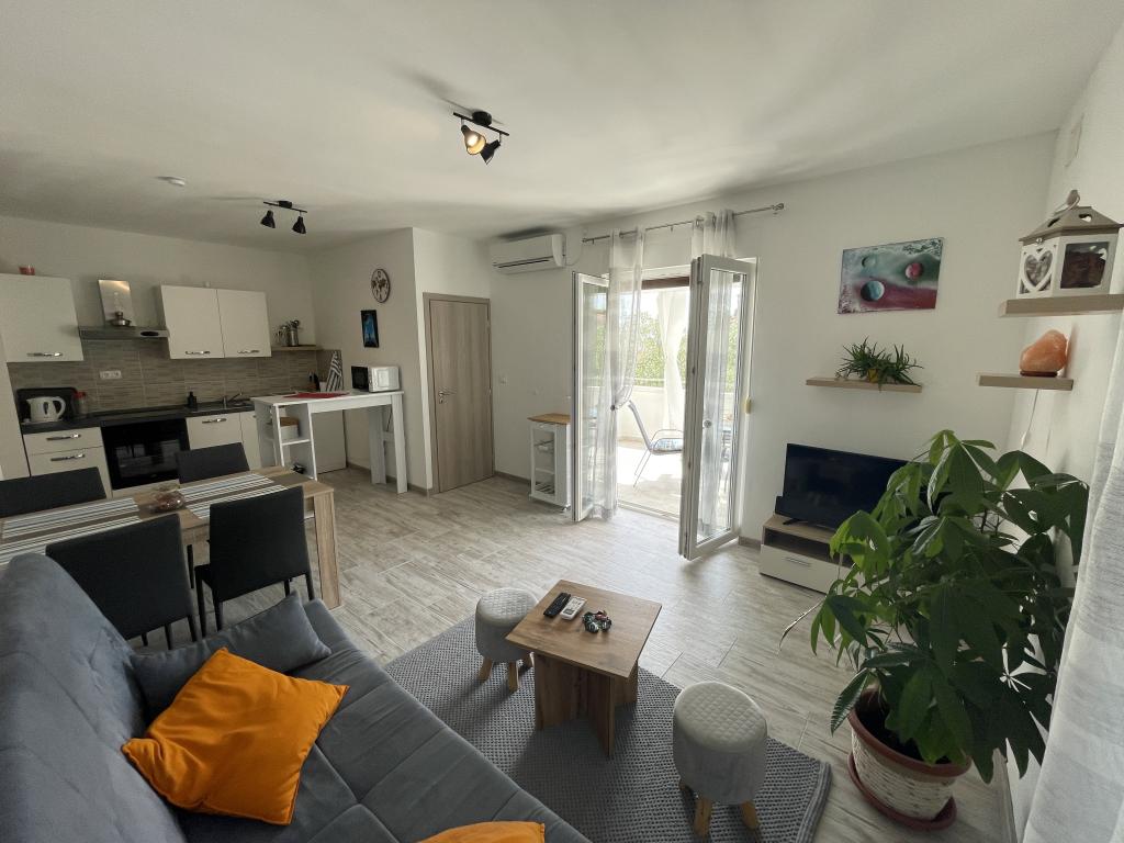 Nowe nowoczesne apartamenty w Poljana, wyspa Ugljan, żupanii zadarskiej, 100 metrów od plaży, sklep, restauracja, kawiarnia znajdują się 200 metrów od mieszkania, każdy apartament ma 60m2, dwie sypialnie, salon iw pełni wyposażoną kuchnię z dużym balkonem . Idealny dla miłośników spacerów, jazdy na rowerze i spacerów po drzewach, odwiedzających Twierdzę Sveti Mihovil oddaloną o 4 km, wyspę Galovac 80 metrów od lądu. Port promowy oddalony jest od obiektu o 2,5 km. Co godzinę kursują pociągi, którymi można dojechać do Zadaru w 25 minut.
